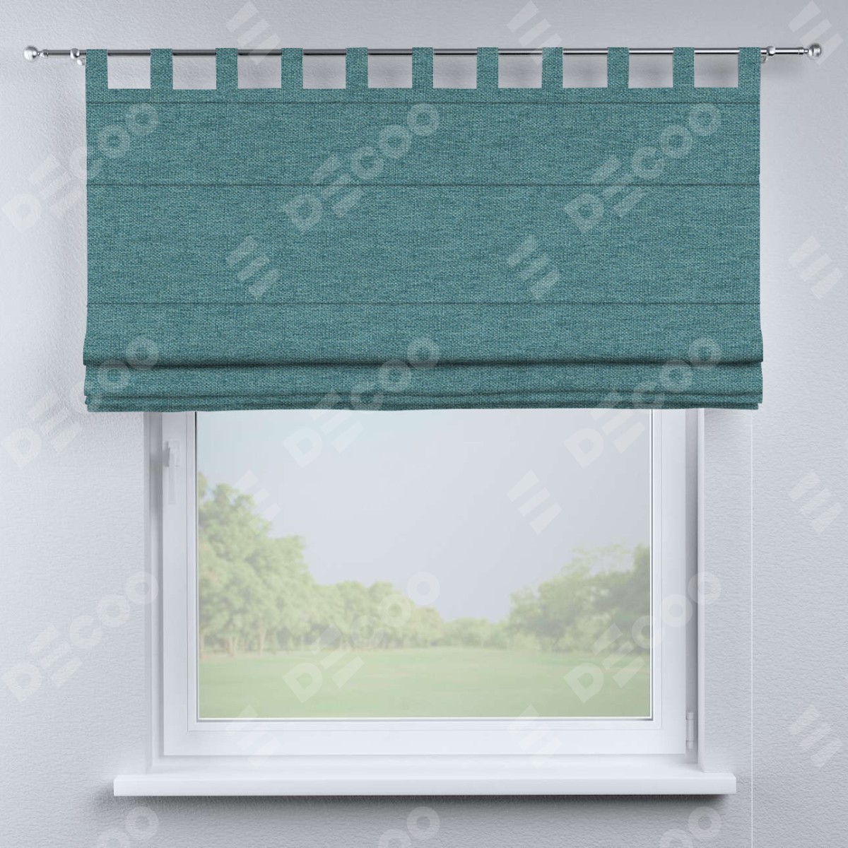 Римская штора производителя «Cortin», используется для проёма, пошита из ткани стиф димаут бирюзовый, артикул ткани 18196. Данная модель пошита на петлях, комплектуется на выбор круглым карнизом и подходит для монтажа на стену. Римская штора на петлях имеет простую систему регулировки высоты, отличительным преимуществом данной модели является простой способ монтажа. Достаточно повесить ее на трубу и штора готова!