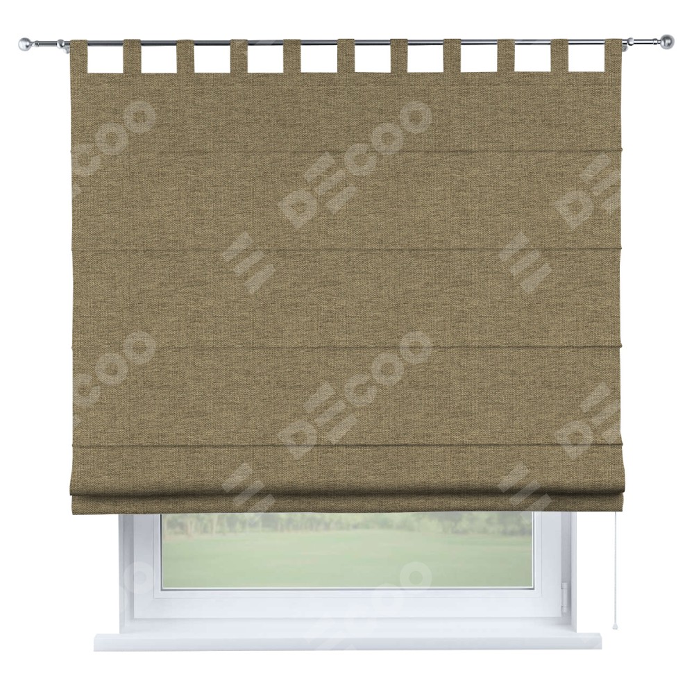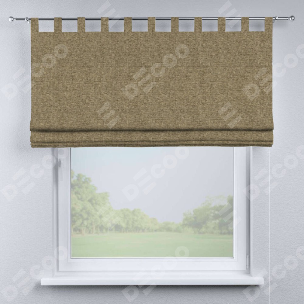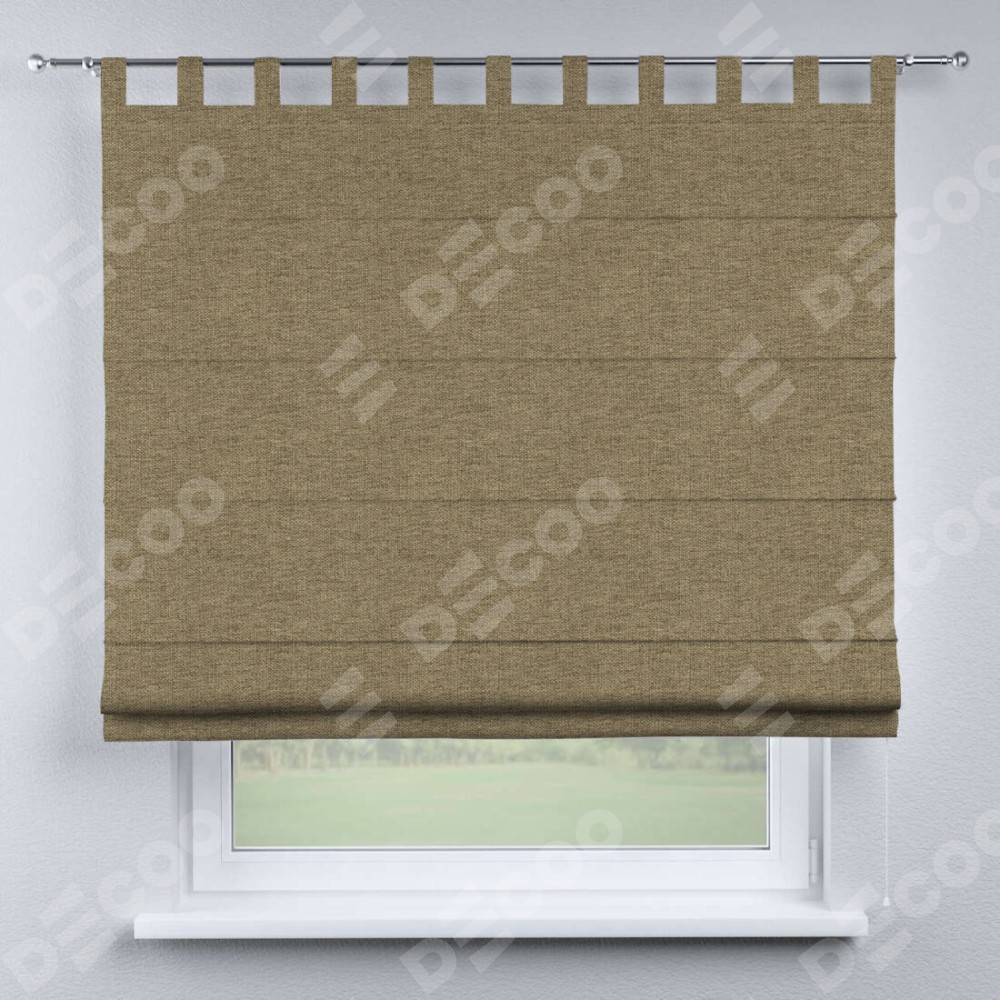 Римская штора производителя «Cortin», используется для проёма, пошита из ткани стиф димаут тёмно-бежевый, артикул ткани 18085. Данная модель пошита на петлях, комплектуется на выбор круглым карнизом и подходит для монтажа на стену. Римская штора на петлях имеет простую систему регулировки высоты, отличительным преимуществом данной модели является простой способ монтажа. Достаточно повесить ее на трубу и штора готова!
