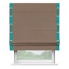 Римская штора производителя «Cortin», используется для проёма, пошита из ткани блэкаут однотонный коричневый, артикул ткани 88285. Отделка шторы кантом «Стрим Дуо» на кантах расположены люверсы с пояском, ткань для канта используется из блэкаута однотонного разной расцветки на выбор. Ткань для пояска обычно используется из основной ткани шторы, а так же можно сделать из любой расцветки по желанию. Имеет универсальный механизм и подходит для монтажа: на потолок, на стену и в нишу.