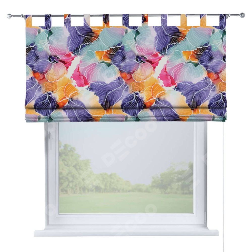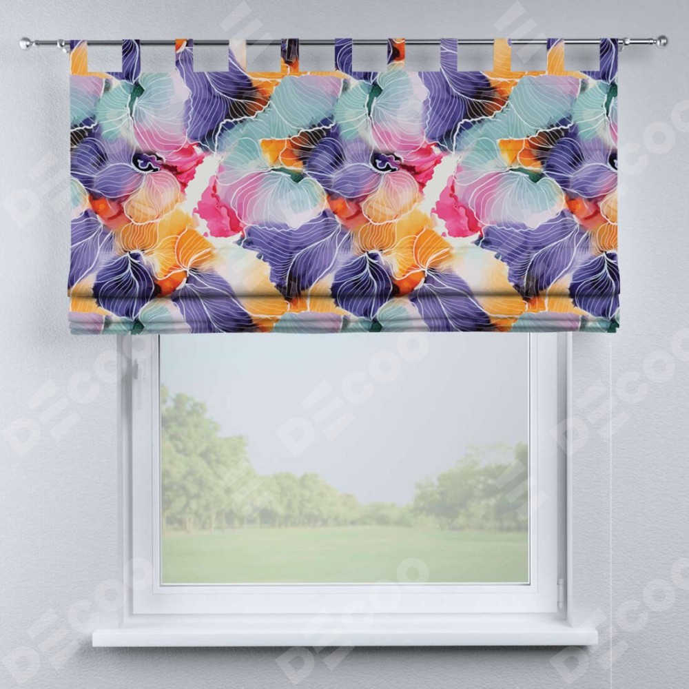 Римская штора производителя «Cortin», используется для проёма, пошита из ткани блэкаут с нанесением сублимационной печати «Роскошные ирисы». Данная модель пошита на петлях, комплектуется на выбор круглым карнизом и подходит для монтажа на стену. Римская штора на петлях имеет простую систему регулировки высоты, отличительным преимуществом данной модели является простой способ монтажа. Достаточно повесить ее на трубу и штора готова!