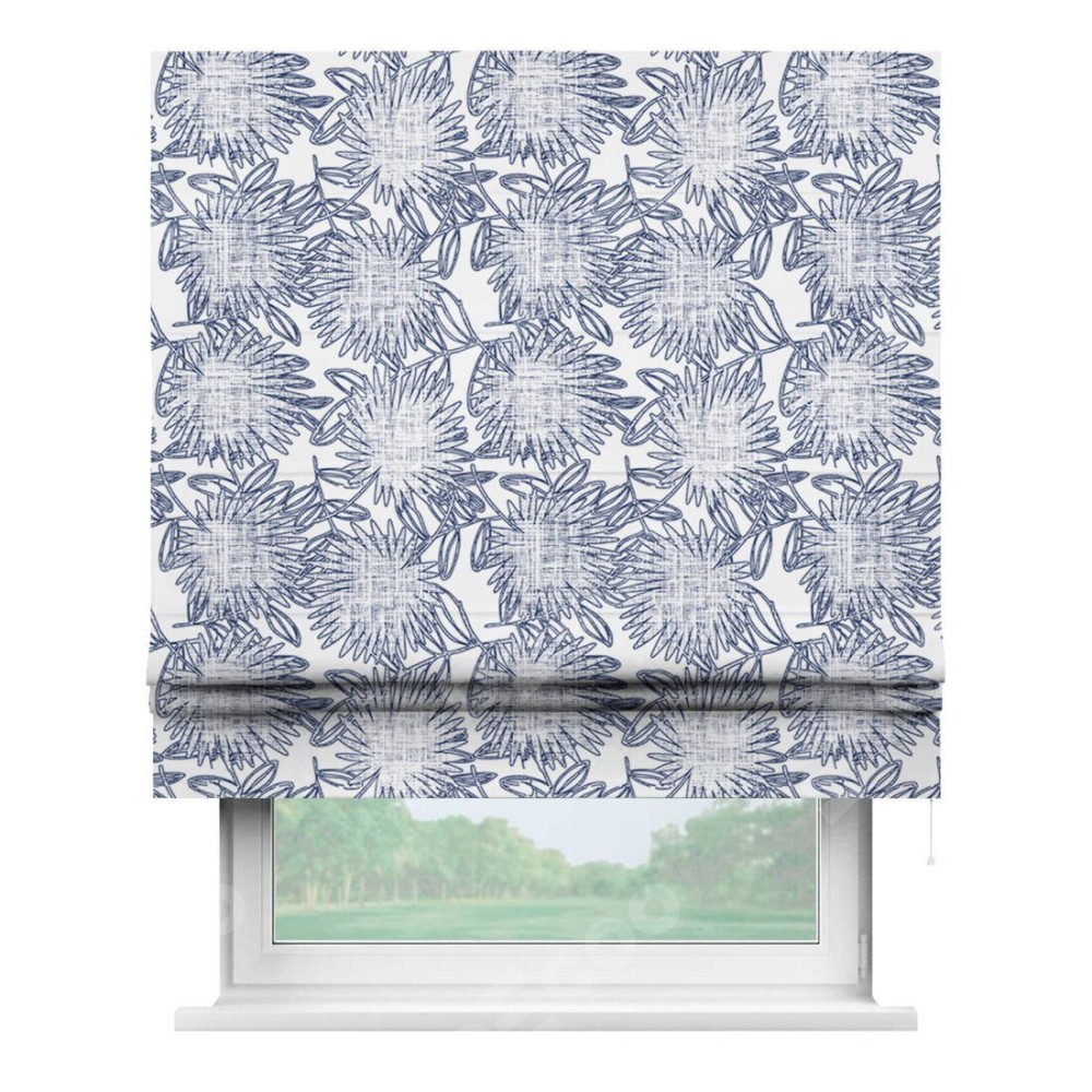 Римская штора производителя «Cortin», используется для проёма, пошита из ткани блэкаут с нанесением сублимационной печати «Синий букет». Имеет универсальный механизм и подходит для монтажа: на потолок, на стену и в нишу.