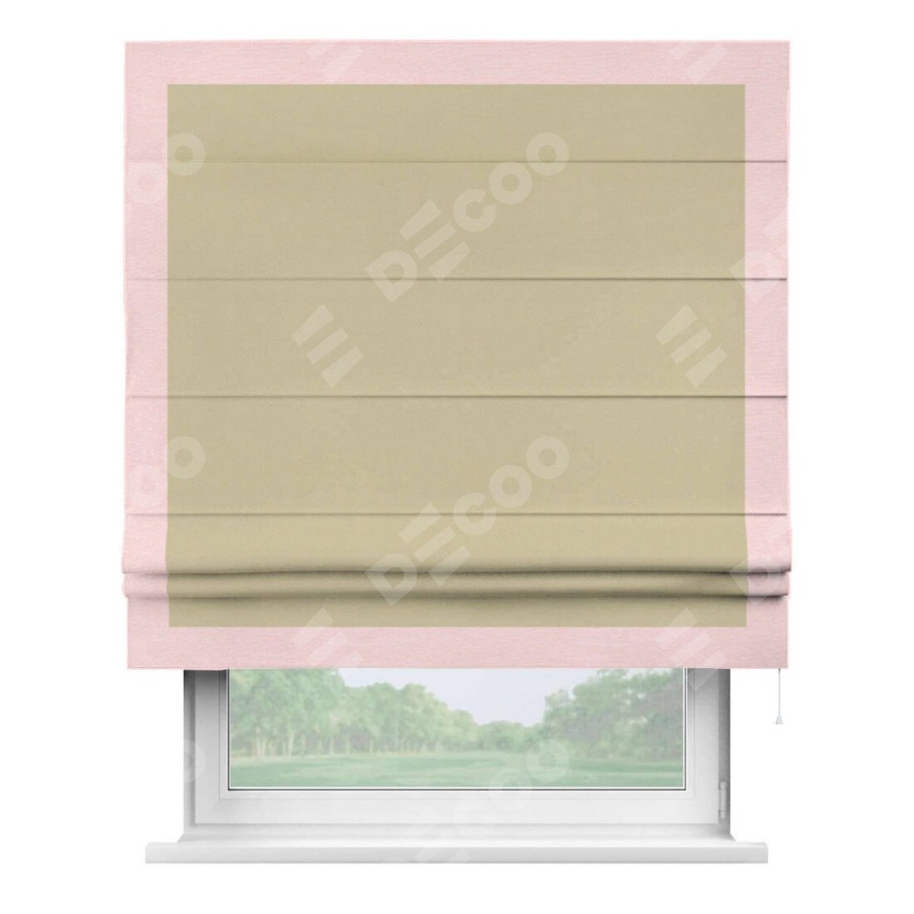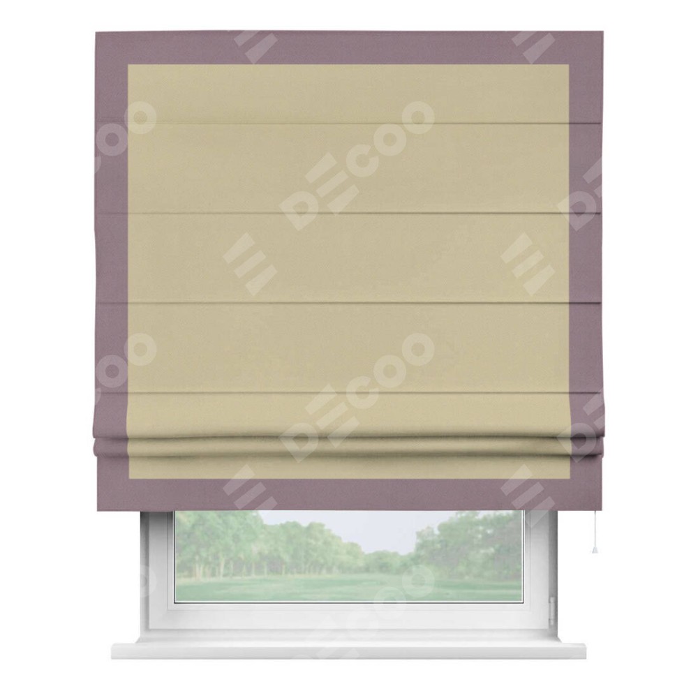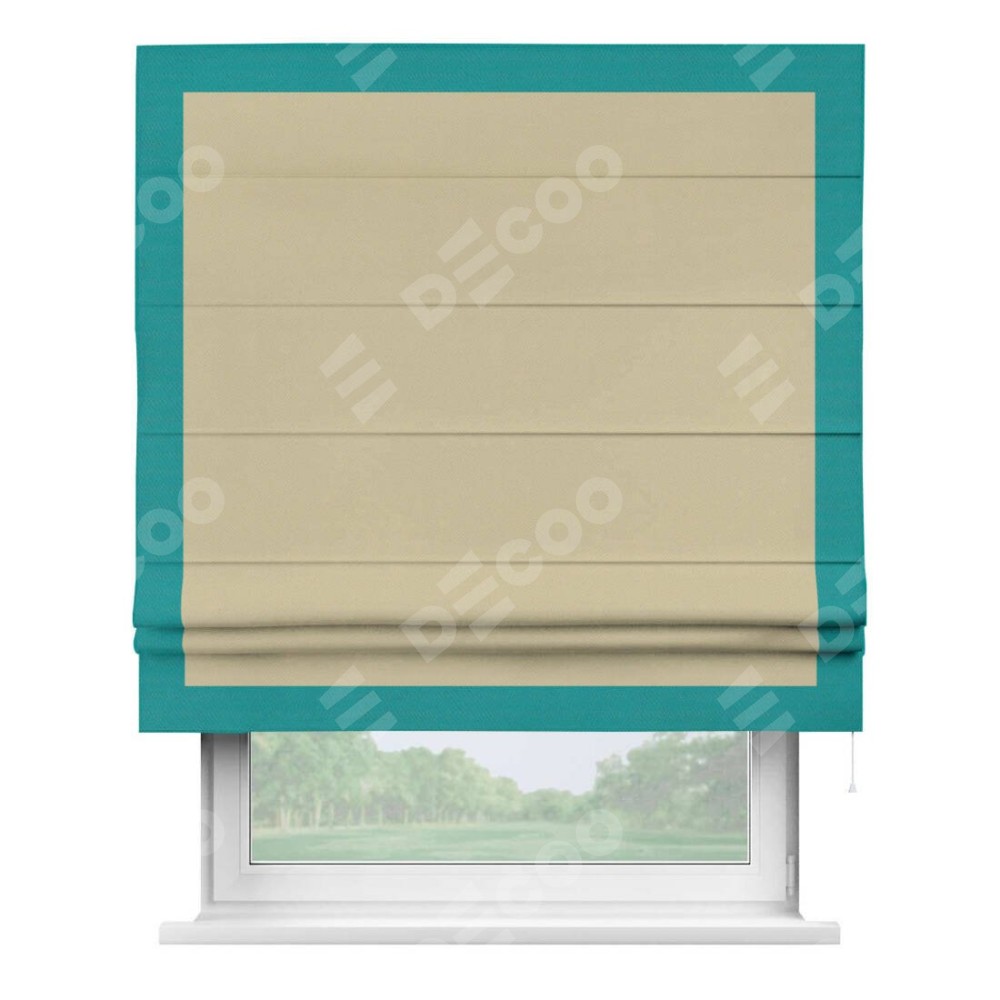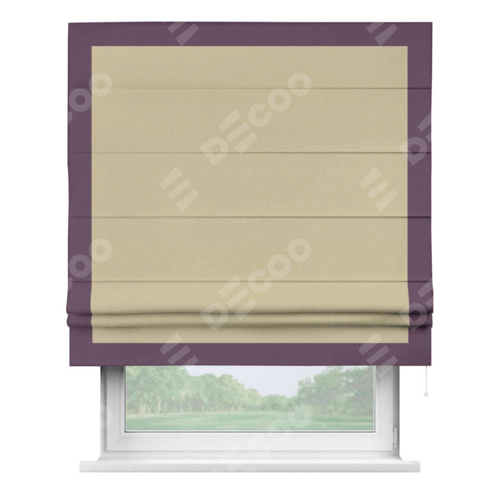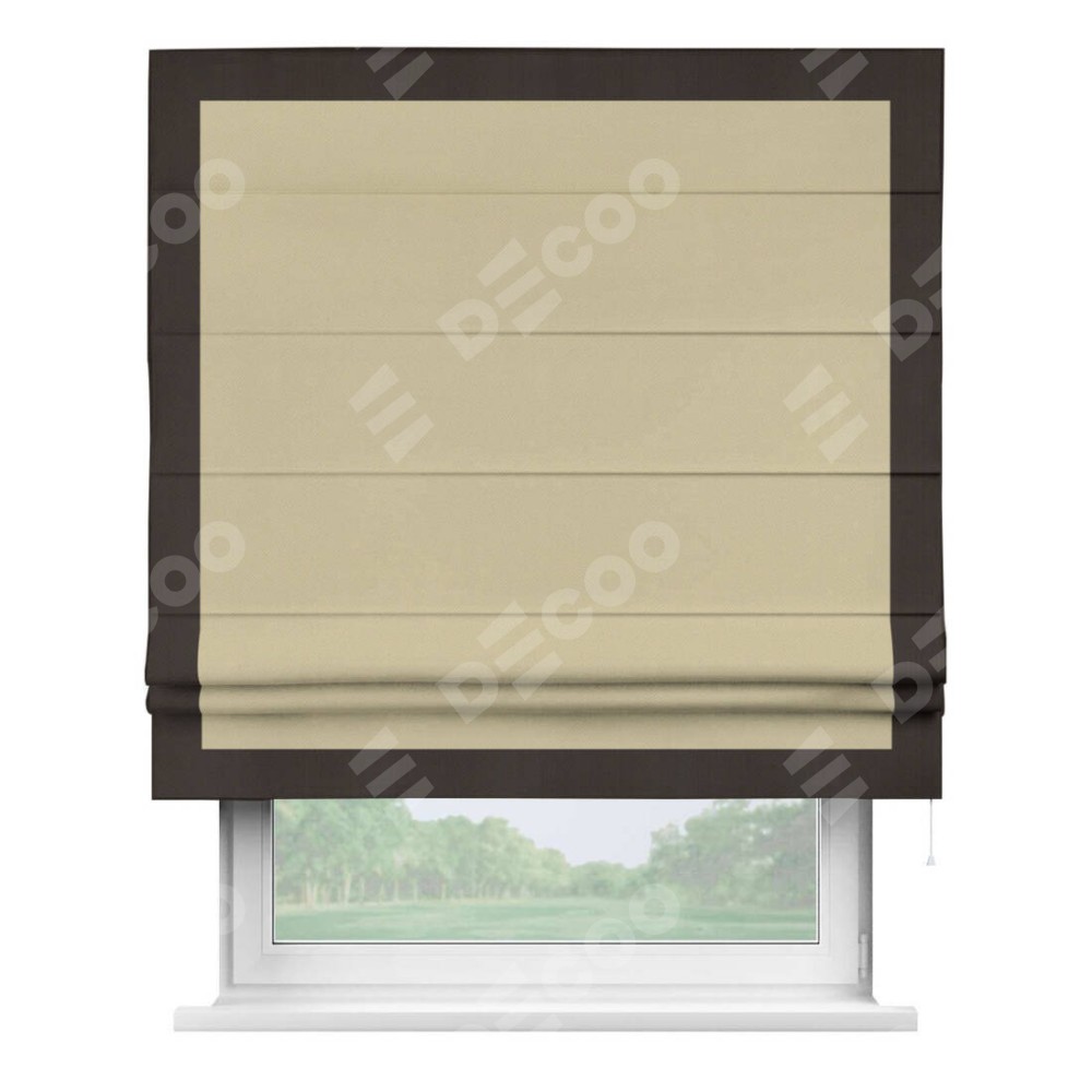 Римская штора производителя «Cortin», используется для проёма, пошита из ткани блэкаут однотонный кофейный, артикул ткани 13130. Отделка шторы кантом «Чесс», ткань для канта используется из блэкаута однотонного разной расцветки на выбор. Имеет универсальный механизм и подходит для монтажа: на потолок, на стену и в нишу.