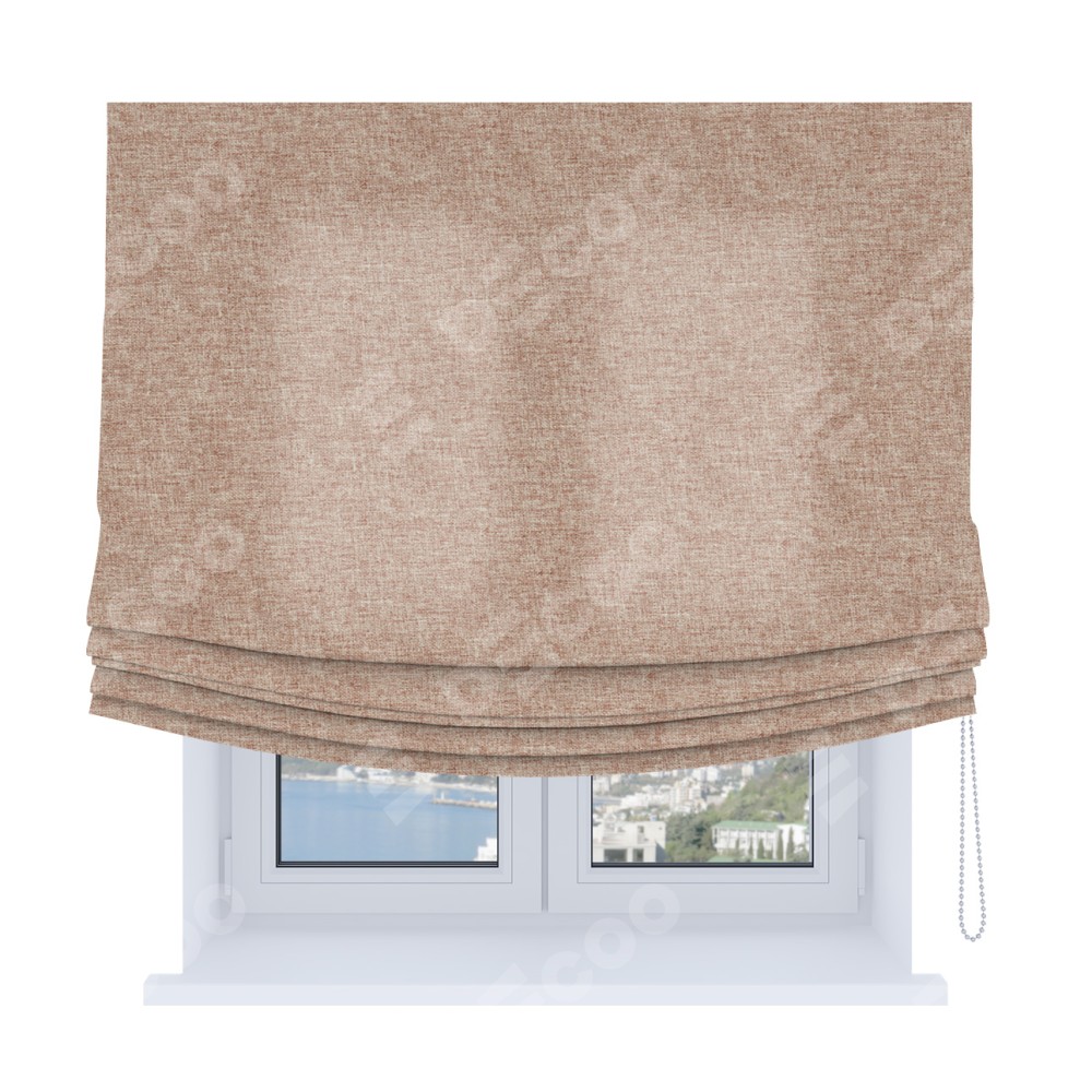 Римская штора Soft производителя «Cortin», используется для проёма, пошита из ткани лён кашемир розовая пудра, артикул ткани 21619. Имеет универсальный механизм и подходит для монтажа: на потолок, на стену и в нишу. В отличие от стандартных римских штор, римская штора Soft не имеет горизонтальных вставок и нижнего отвеса. Это позволяет ткани произвольно драпироваться в свободные мягкие складки.
