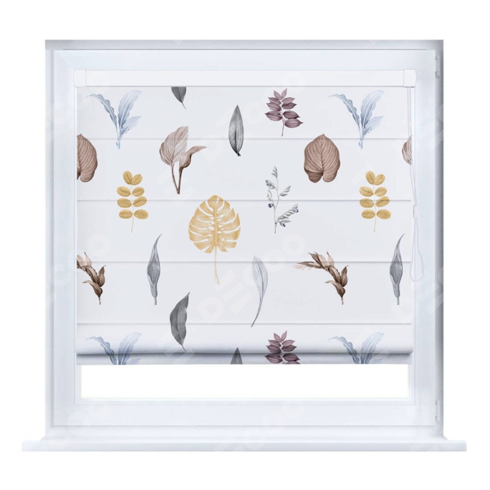 Римская штора производителя «Cortin», устанавливается на створку окна, пошита из ткани блэкаут с нанесением сублимационной печати «Осенний коллаж». Штора шьётся по индивидуальным размерам, для данного типа римской шторы возможная ширина от 35 до 150 см., высота до 250 см.