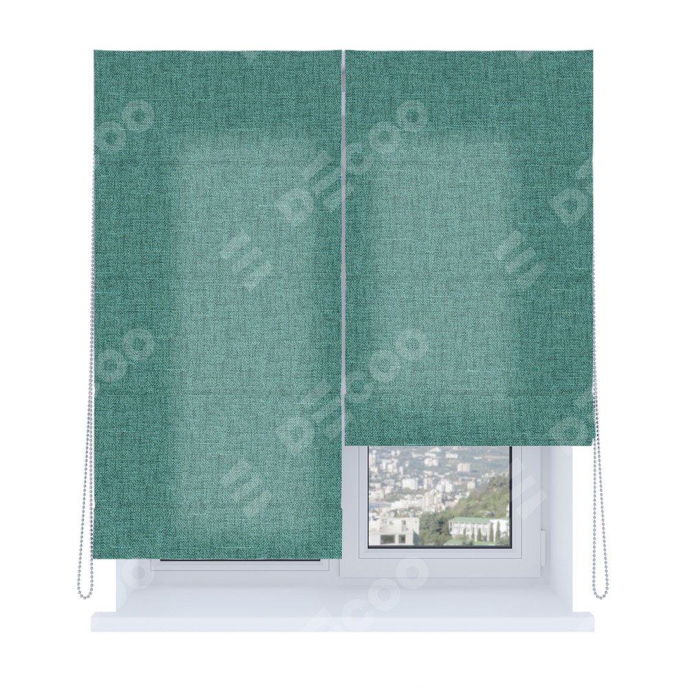 Римская штора «Кортин», система «Комфорт», лён кашемир бирюзовый
