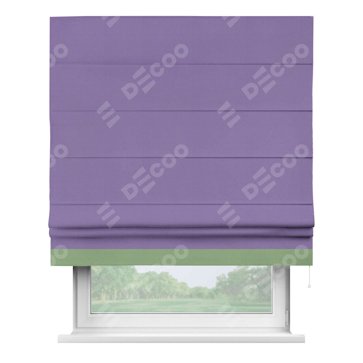 Римская штора производителя «Cortin», используется для проёма, пошита из ткани блэкаут однотонный сиреневый, артикул ткани 88305. Отделка шторы кантом «Джестер», ткань для канта используется из блэкаута однотонного разной расцветки на выбор. Имеет универсальный механизм и подходит для монтажа: на потолок, на стену и в нишу.