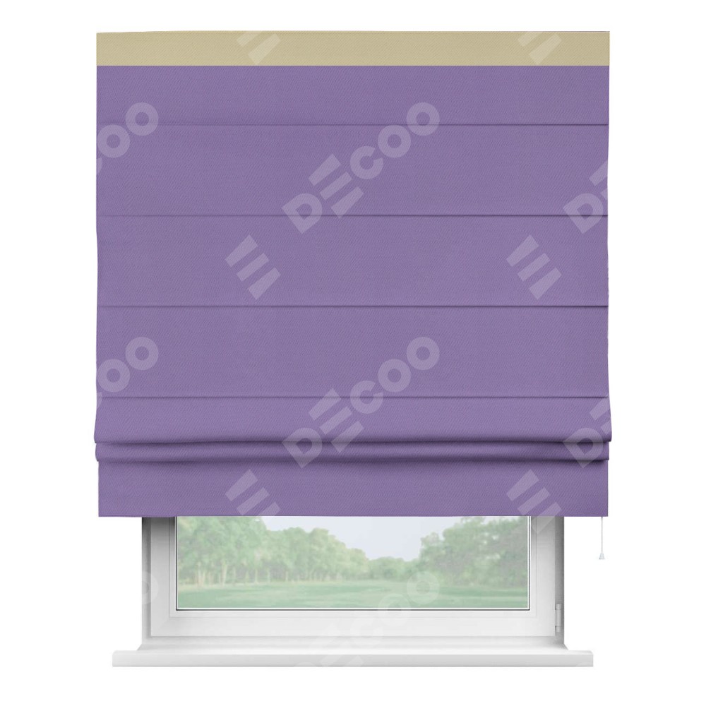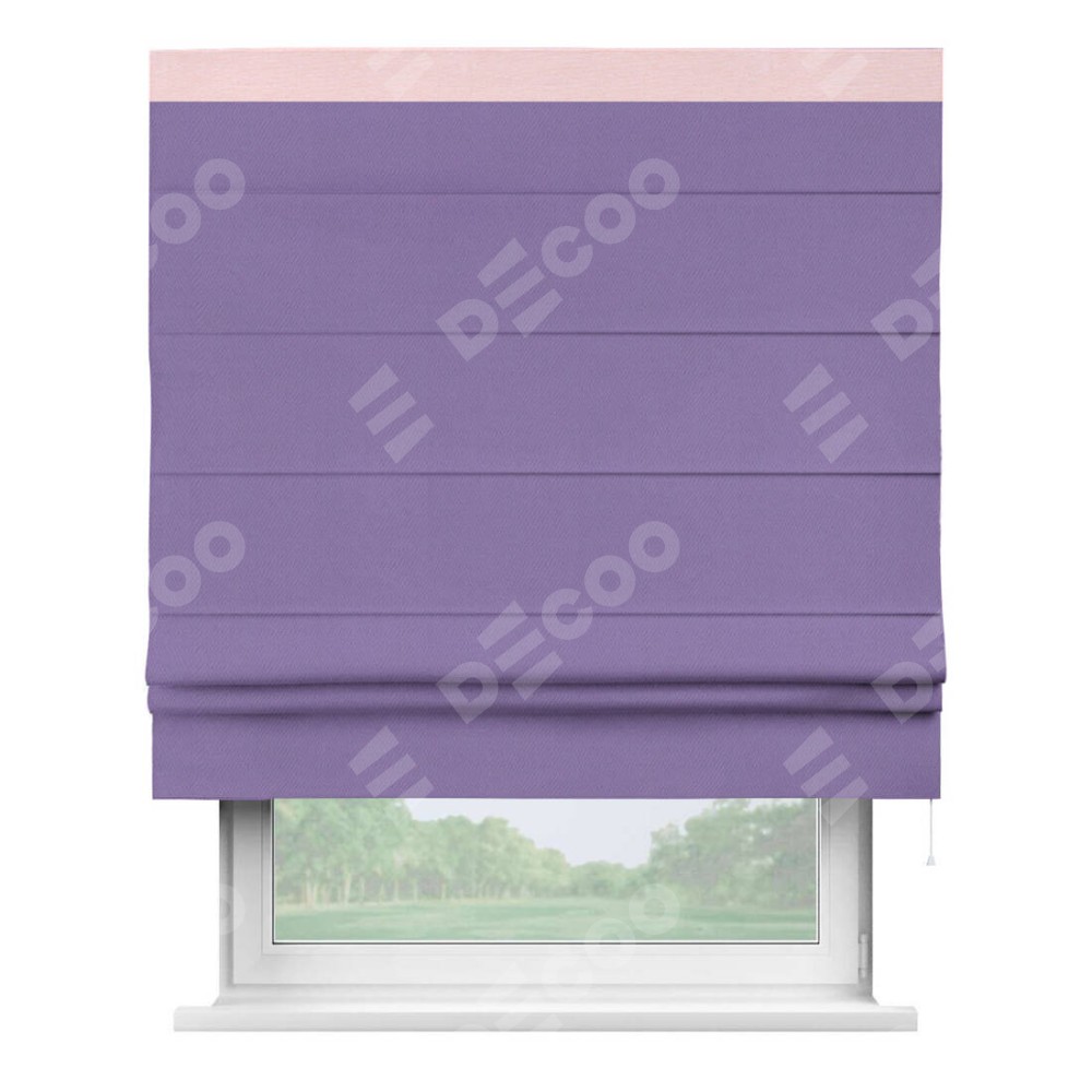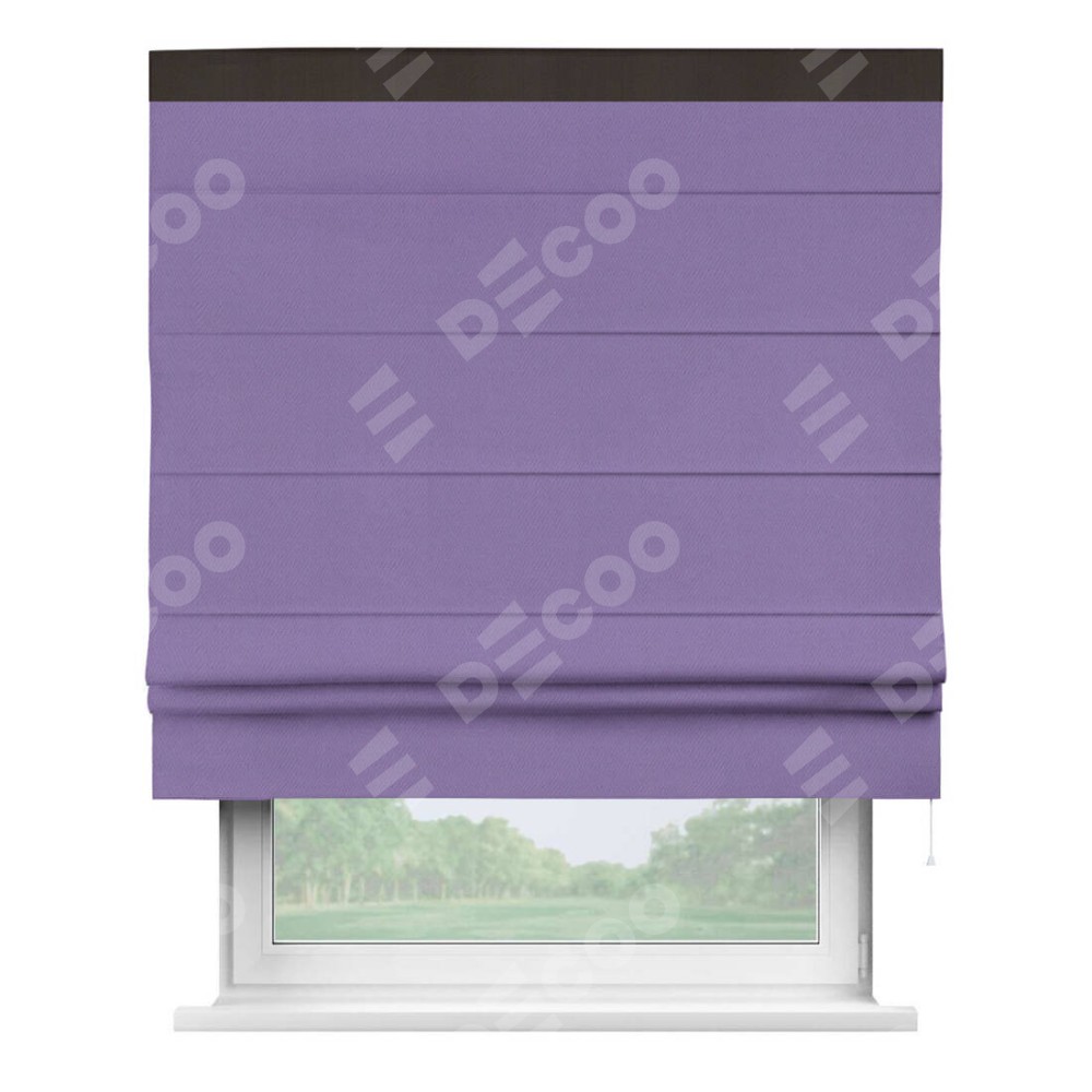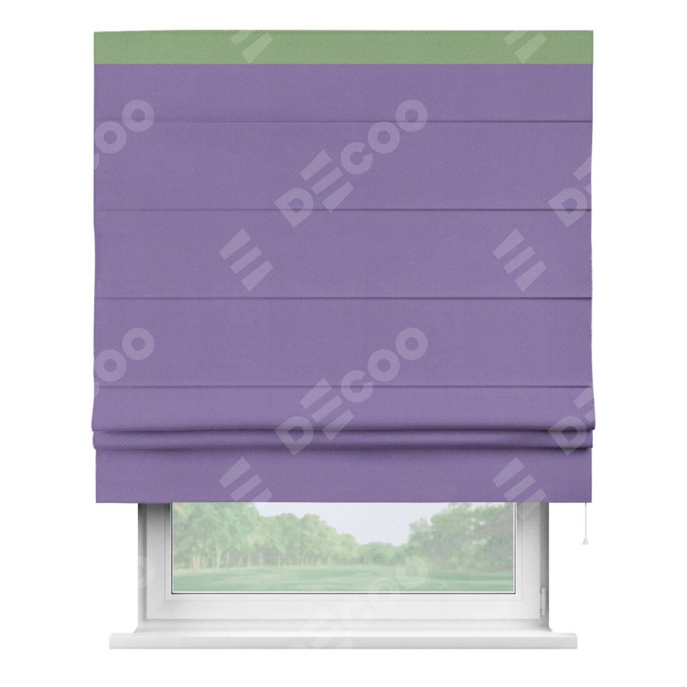 Римская штора производителя «Cortin», используется для проёма, пошита из ткани блэкаут однотонный сиреневый, артикул ткани 88305. Отделка шторы кантом «Кинг», ткань для канта используется из блэкаута однотонного разной расцветки на выбор. Имеет универсальный механизм и подходит для монтажа: на потолок, на стену и в нишу.