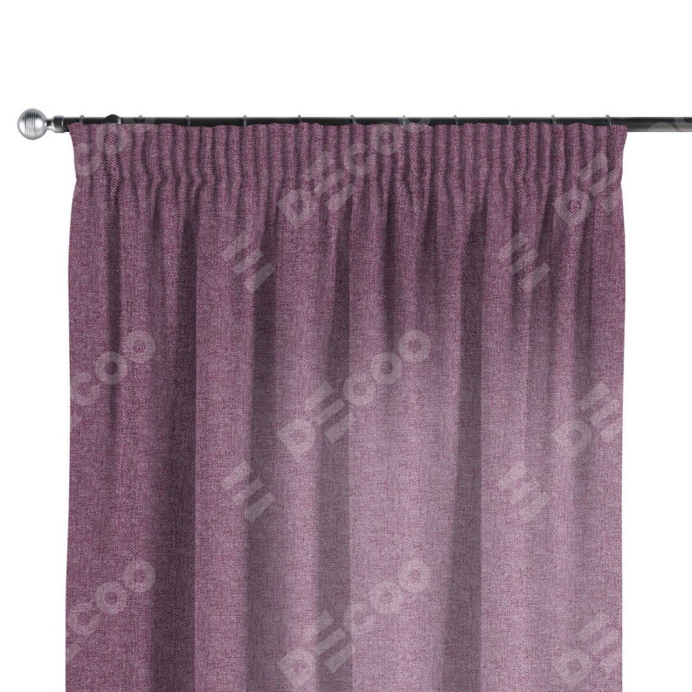 Комплект прямых штор, от производителя «Cortin», пошиты из ткани лён кашемир сиреневый, артикул ткани 21620. С изнаночной стороны в верхней части штор пристрачивается шторная лента с декоративными складками «Карандаш». Для создания элегантных складок прямые шторы шьются по стандарту с коэффициентом 1:2 (на 100 см. ширины проёма 200 см. ширины ткани).