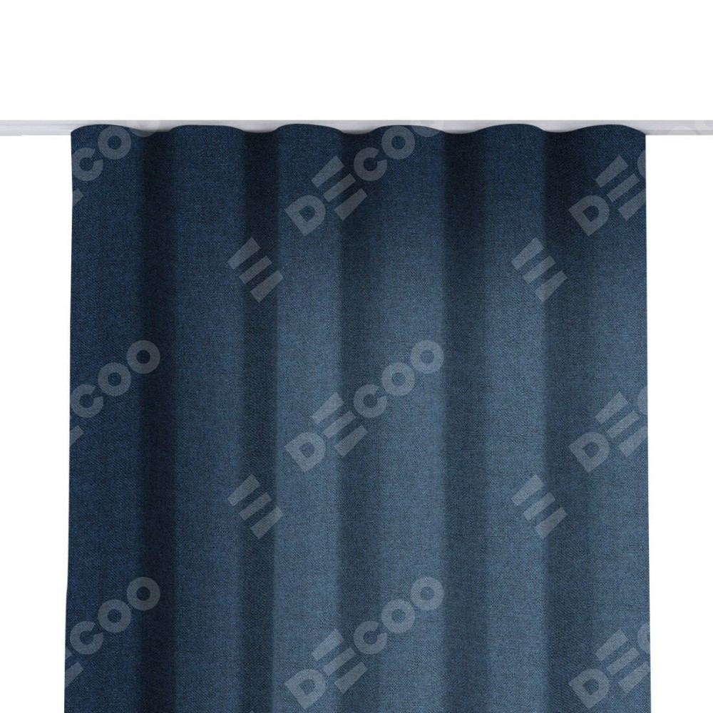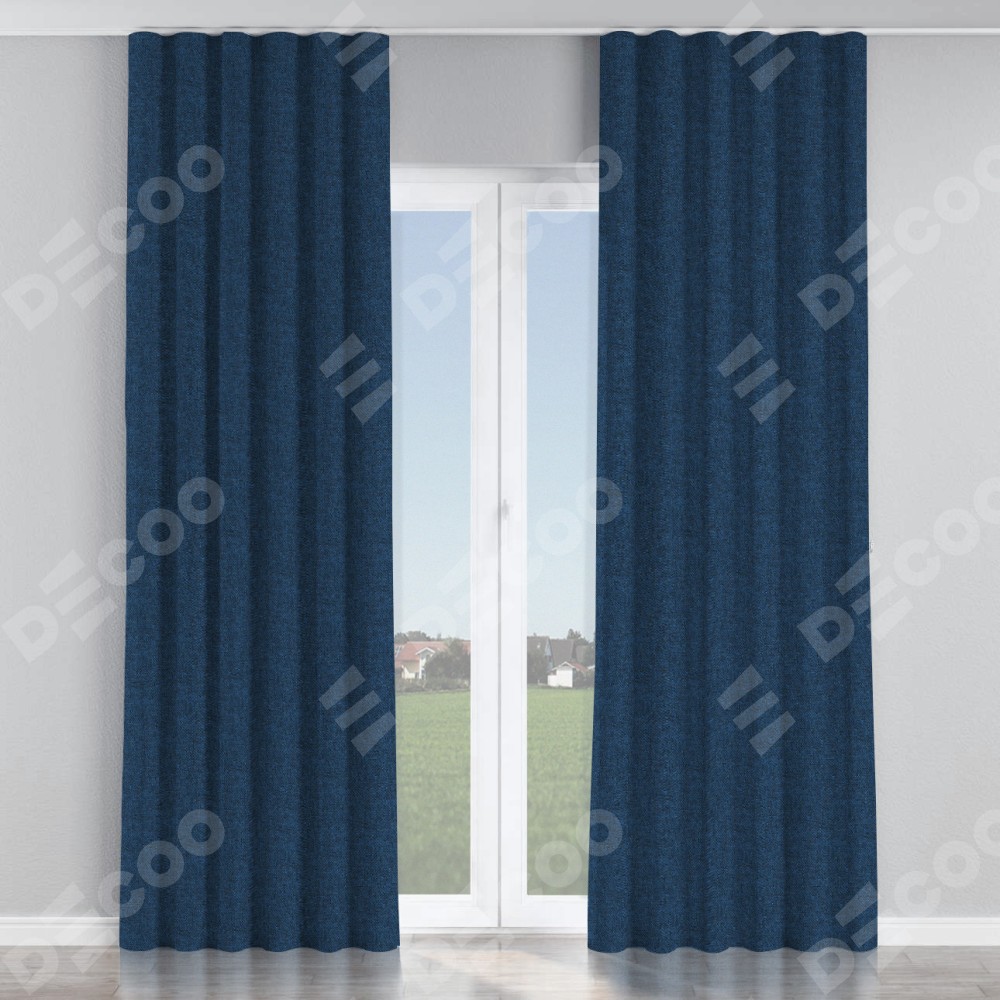 Комплект прямых штор, от производителя «Cortin», пошиты из ткани лён кашемир тёмно-синий, артикул ткани 17215. С изнаночной стороны в верхней части штор пристрачивается шторная лента с декоративными складками «Волна». Для создания элегантных складок прямые шторы шьются по стандарту с коэффициентом 1:2 (на 100 см. ширины проёма 200 см. ширины ткани).