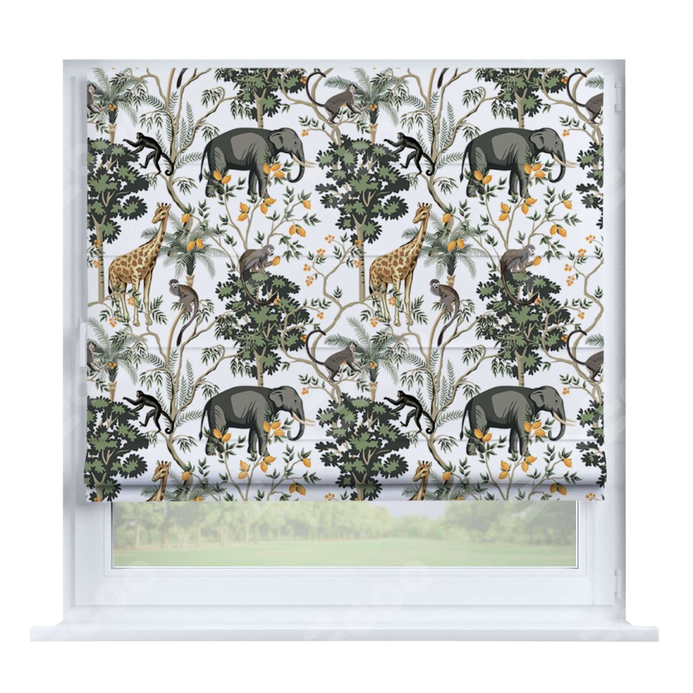 Римская штора производителя «Cortin», устанавливается на створку окна, пошита из ткани блэкаут с нанесением сублимационной печати «Африканские равнины». Штора шьётся по индивидуальным размерам, для данного типа римской шторы возможная ширина от 35 до 150 см., высота до 250 см.