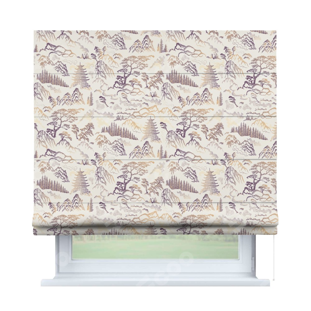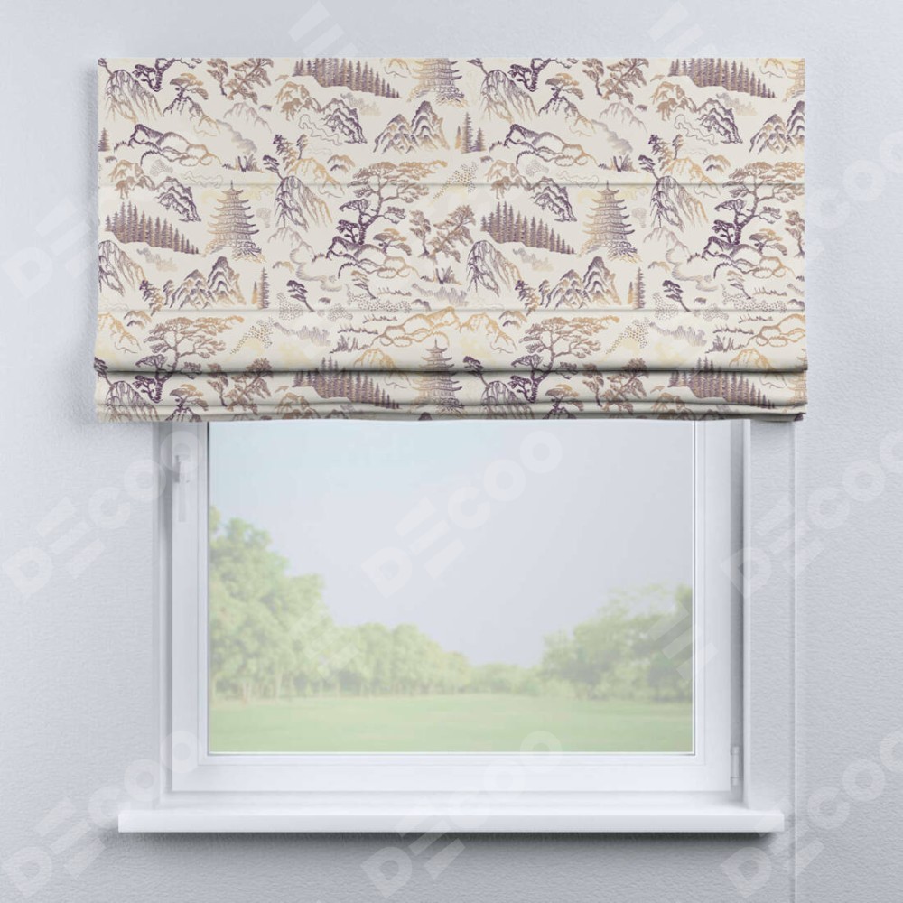 Римская штора производителя «Cortin», используется для проёма, пошита из ткани блэкаут с нанесением сублимационной печати «Горные вершины». Имеет универсальный механизм и подходит для монтажа: на потолок, на стену и в нишу.
