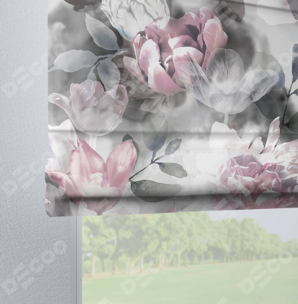 Римская штора производителя «Cortin», используется для проёма, пошита из ткани блэкаут с нанесением сублимационной печати «Цветочная композиция». Данная модель пошита на петлях, комплектуется на выбор круглым карнизом и подходит для монтажа на стену. Римская штора на петлях имеет простую систему регулировки высоты, отличительным преимуществом данной модели является простой способ монтажа. Достаточно повесить ее на трубу и штора готова!