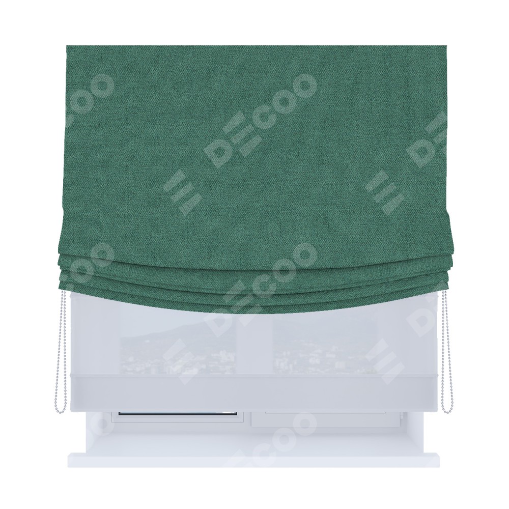 Римская штора день-ночь производителя «Cortin», используется для проёма, пошита из двух полотен, с лицевой стороны лён блэкаут бирюзовый артикул 69517, вторая ткань тюль (по стандарту комплектуется тюль белого цвета артикул V-01). Имеет универсальный механизм и подходит для монтажа: на потолок, на стену и в нишу. Удобное управление каждой шторой отдельно.