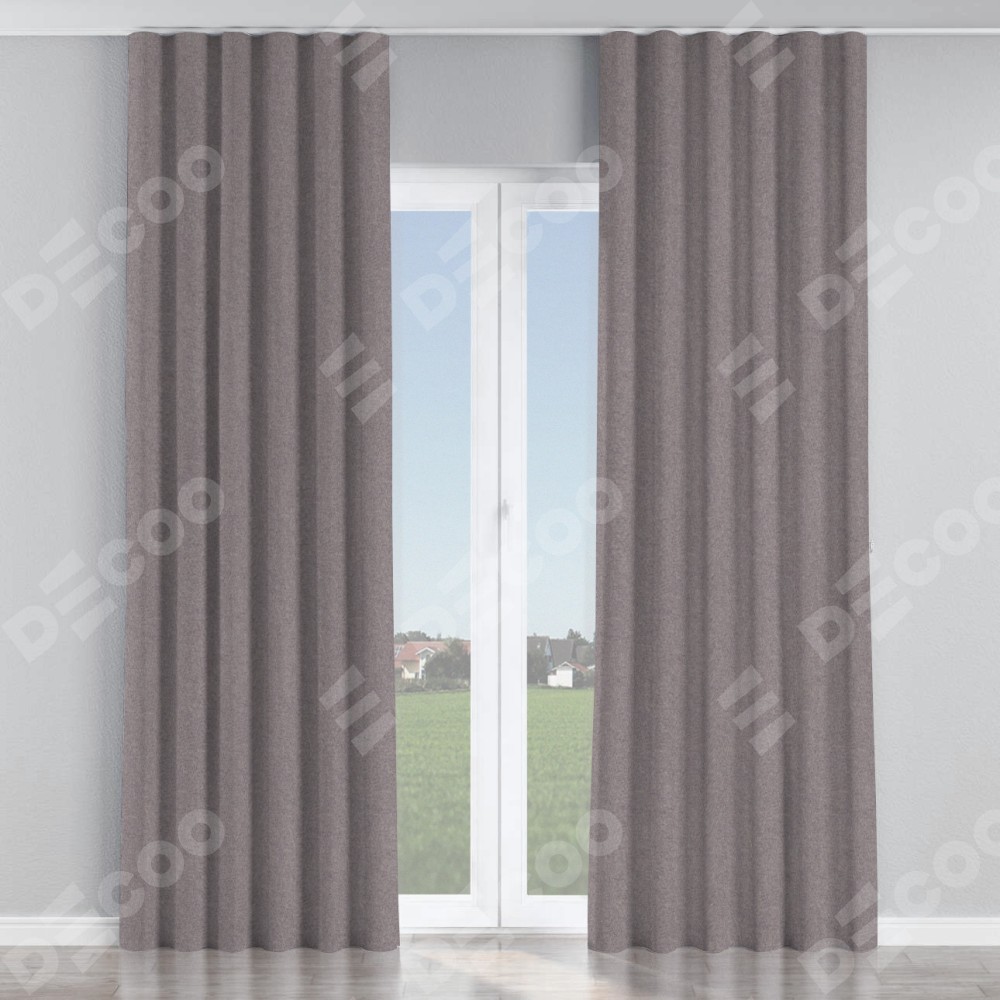 Комплект прямых штор, от производителя «Cortin», пошиты из ткани лён блэкаут сиреневый, артикул ткани 69576. С изнаночной стороны в верхней части штор пристрачивается шторная лента с декоративными складками «Волна». Для создания элегантных складок прямые шторы шьются по стандарту с коэффициентом 1:2 (на 100 см. ширины проёма 200 см. ширины ткани).