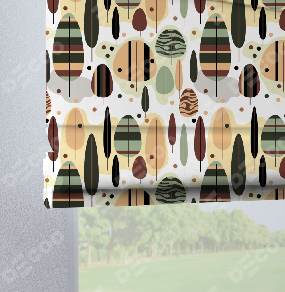 Римская штора производителя «Cortin», используется для проёма, пошита из ткани блэкаут с нанесением сублимационной печати «Деревья в полоску». Данная модель пошита на петлях, комплектуется на выбор круглым карнизом и подходит для монтажа на стену. Римская штора на петлях имеет простую систему регулировки высоты, отличительным преимуществом данной модели является простой способ монтажа. Достаточно повесить ее на трубу и штора готова!