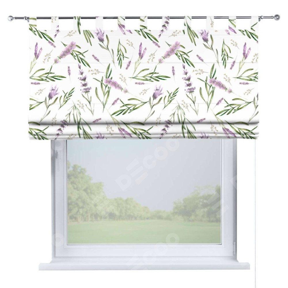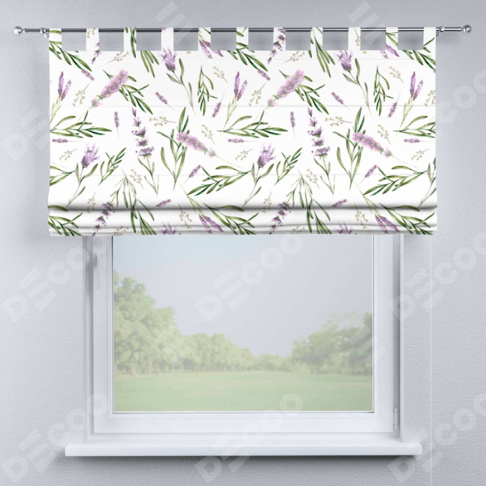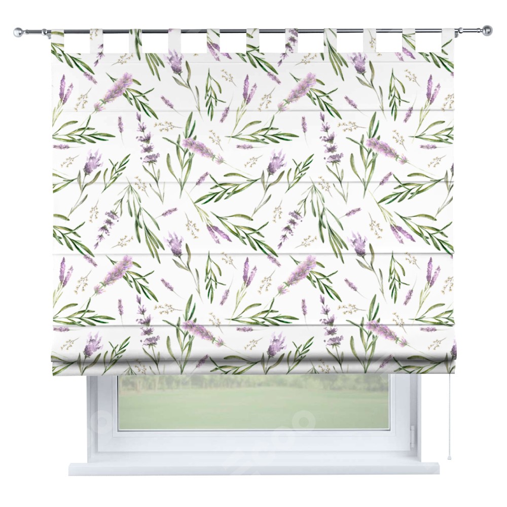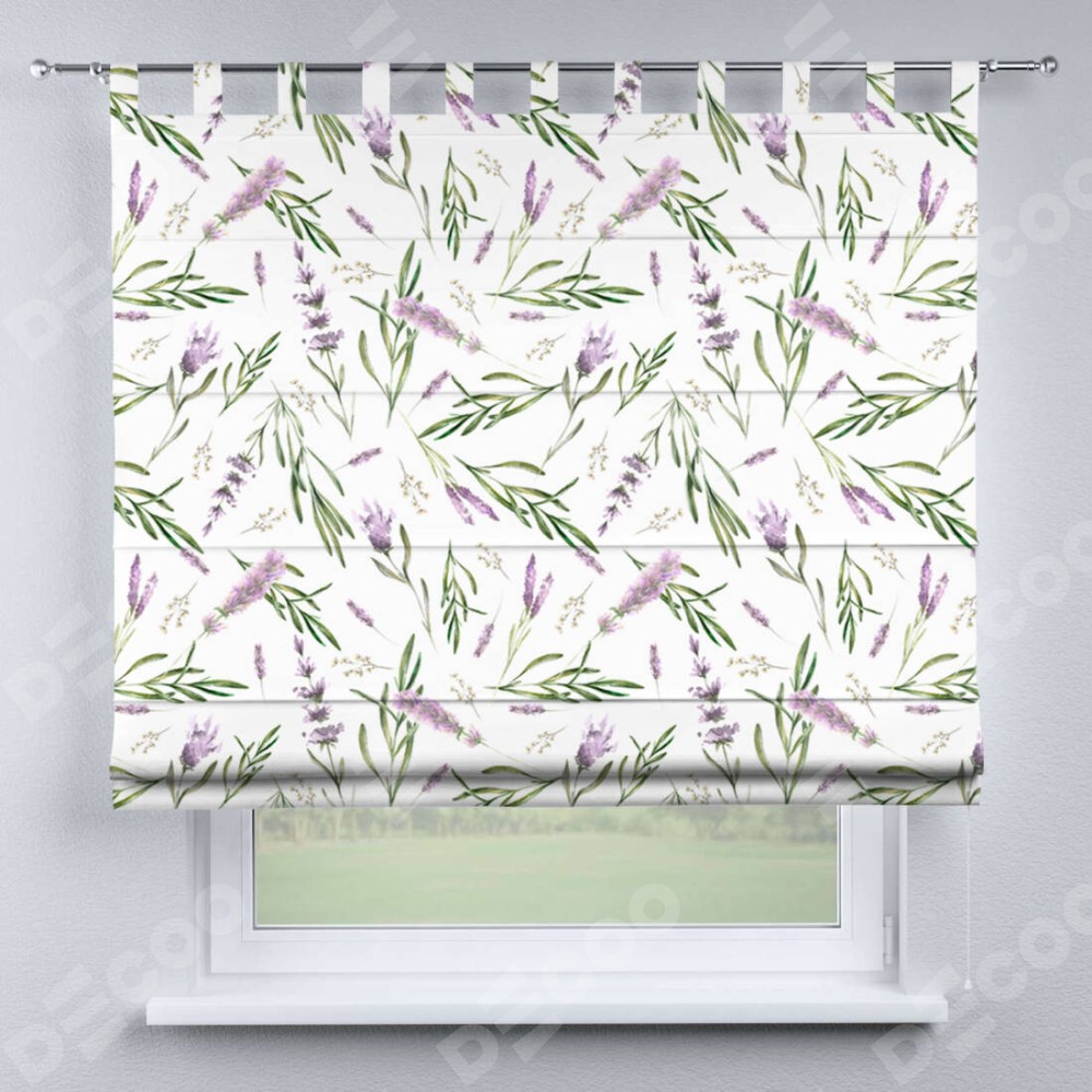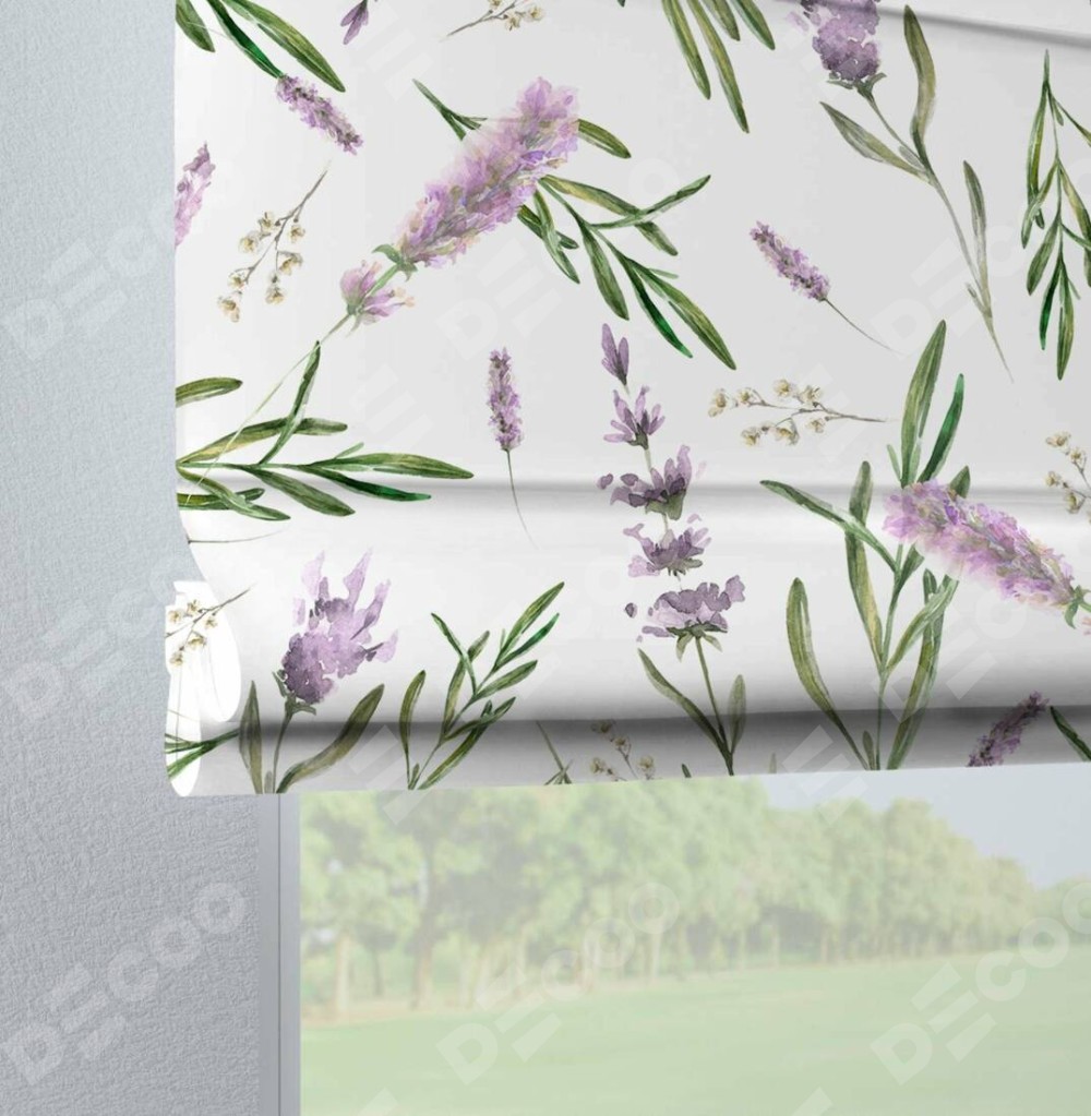 Римская штора производителя «Cortin», используется для проёма, пошита из ткани блэкаут с нанесением сублимационной печати «Лавандовое поле». Данная модель пошита на петлях, комплектуется на выбор круглым карнизом и подходит для монтажа на стену. Римская штора на петлях имеет простую систему регулировки высоты, отличительным преимуществом данной модели является простой способ монтажа. Достаточно повесить ее на трубу и штора готова!
