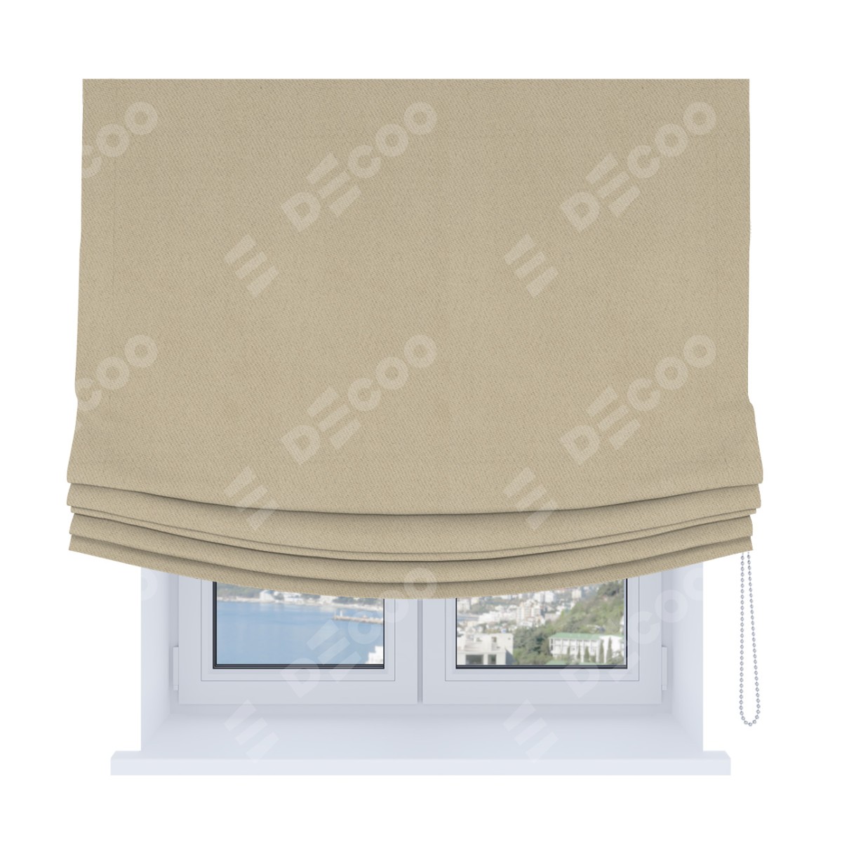 Римская штора Soft производителя «Cortin», используется для проёма, пошита из ткани блэкаут однотонный кофейно-бежевый, артикул ткани 12095−1. Имеет универсальный механизм и подходит для монтажа: на потолок, на стену и в нишу. В отличие от стандартных римских штор, римская штора Soft не имеет горизонтальных вставок и нижнего отвеса. Это позволяет ткани произвольно драпироваться в свободные мягкие складки.