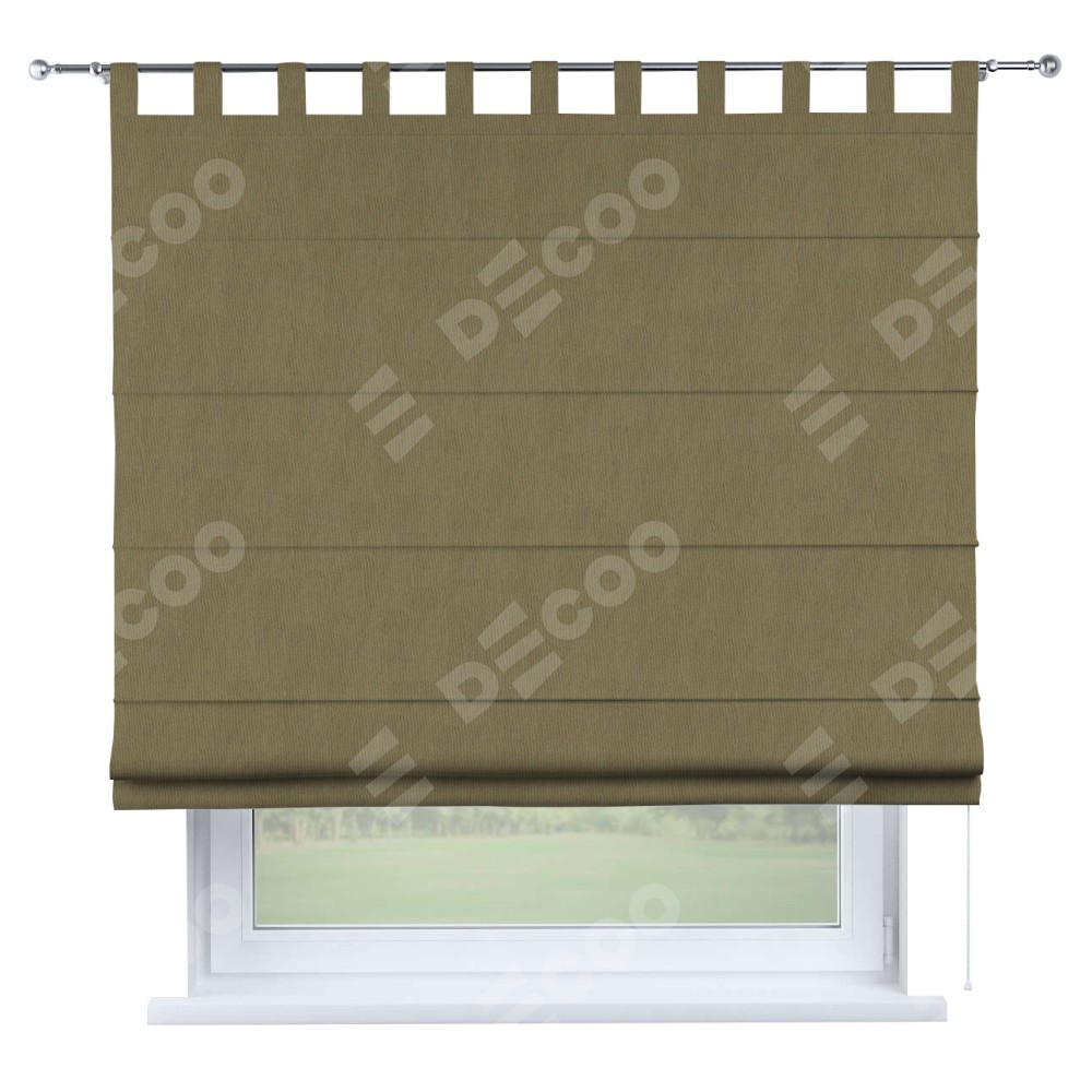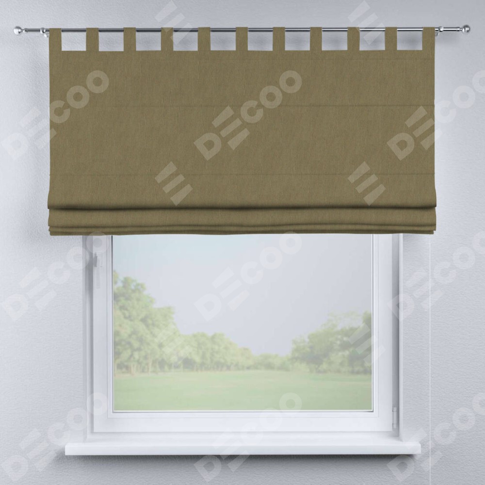 Римская штора производителя «Cortin», используется для проёма, пошита из ткани блэкаут однотонный бежево-золотой, артикул ткани 12095−2. Данная модель пошита на петлях, комплектуется на выбор круглым карнизом и подходит для монтажа на стену. Римская штора на петлях имеет простую систему регулировки высоты, отличительным преимуществом данной модели является простой способ монтажа. Достаточно повесить ее на трубу и штора готова!