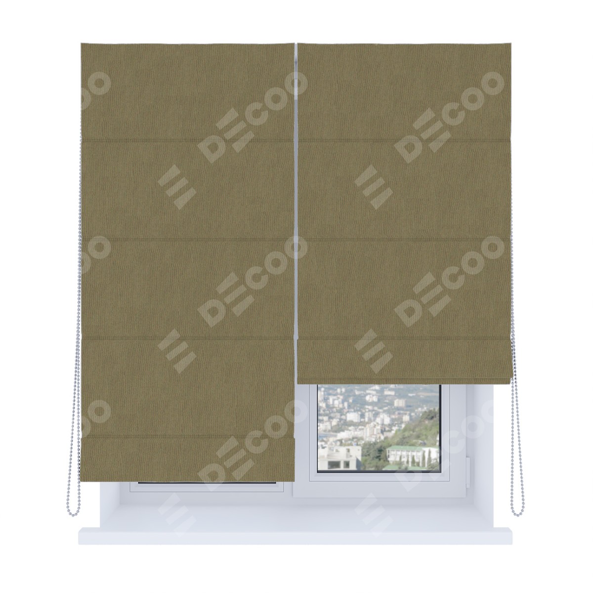 Римская штора производителя «Cortin», используется для проёма, пошита из ткани блэкаут однотонный бежево-золотой, артикул ткани 12095−2. Имеет универсальный механизм и подходит для монтажа: на потолок, на стену и в нишу. Удобное управление каждой шторой отдельно.
