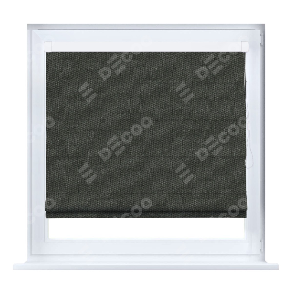 Римская штора производителя «Cortin», устанавливается на створку окна, пошита из ткани лён димаут графитово-серый, артикул 35129. Штора шьётся по индивидуальным размерам, для данного типа римской шторы возможная ширина от 35 до 150 см., высота до 250 см.