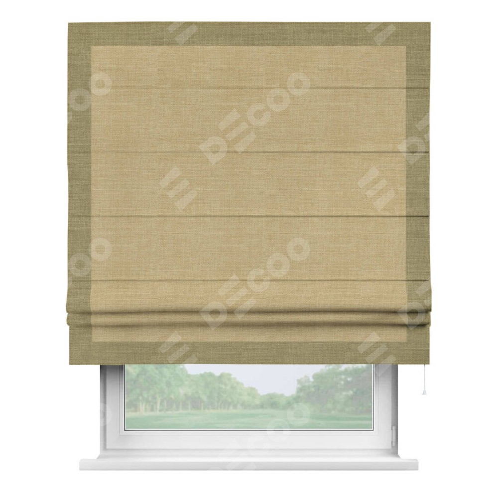 Римская штора «Кортин» с кантом Чесс, для проема, ткань лён бежевый