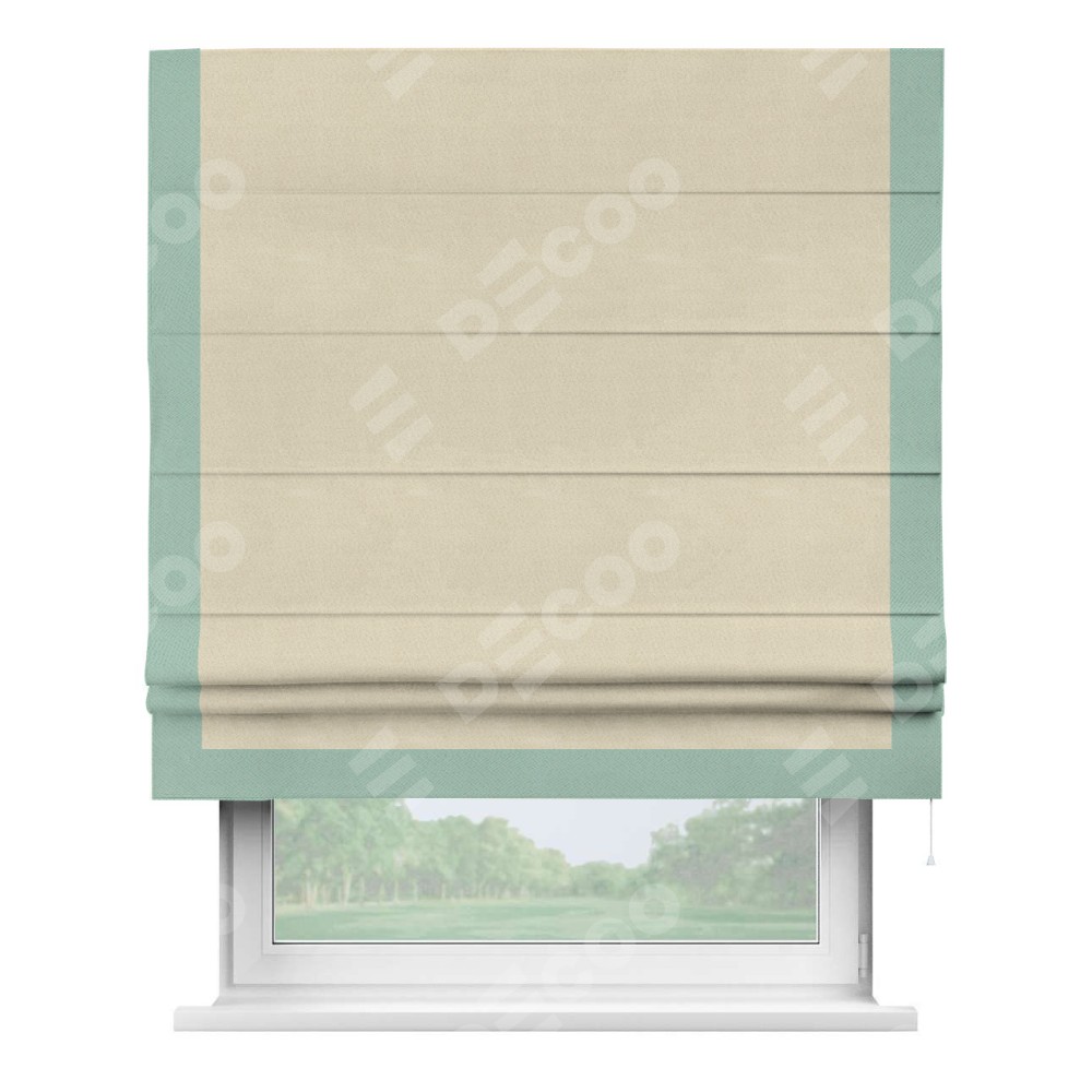 Римская штора производителя «Cortin», используется для проёма, пошита из ткани блэкаут однотонный бежевый, артикул ткани 13125. Отделка шторы кантом «Виктория», ткань для канта используется из блэкаута однотонного разной расцветки на выбор. Имеет универсальный механизм и подходит для монтажа: на потолок, на стену и в нишу.
