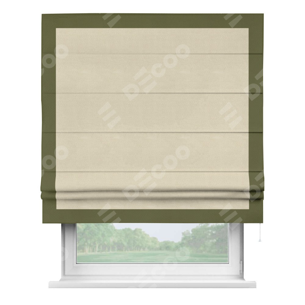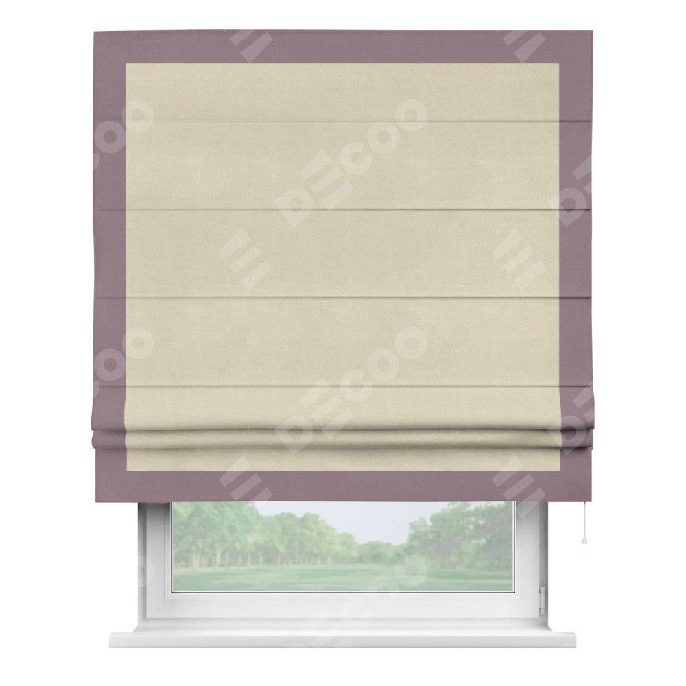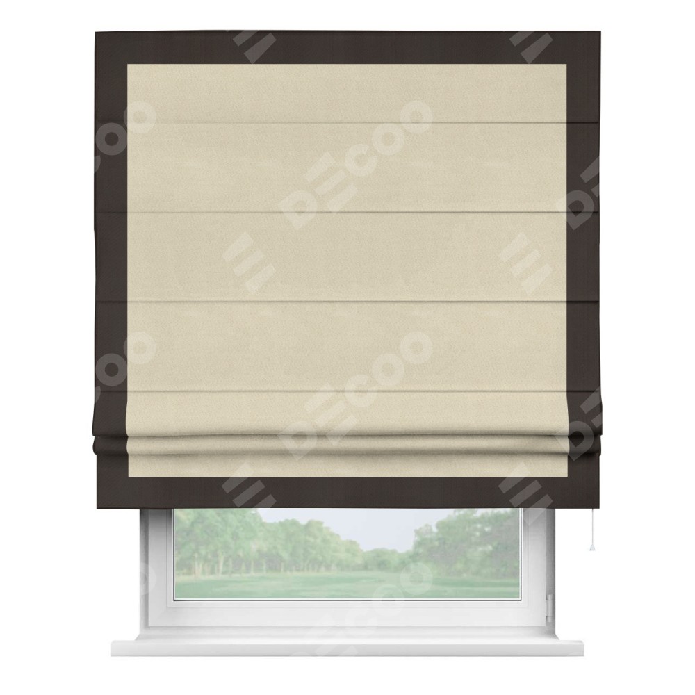 Римская штора производителя «Cortin», используется для проёма, пошита из ткани блэкаут однотонный бежевый, артикул ткани 13125. Отделка шторы кантом «Чесс», ткань для канта используется из блэкаута однотонного разной расцветки на выбор. Имеет универсальный механизм и подходит для монтажа: на потолок, на стену и в нишу.