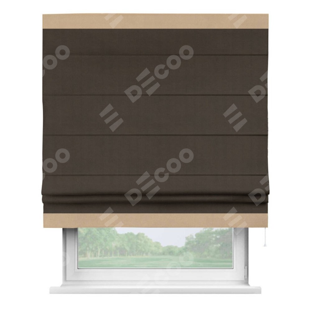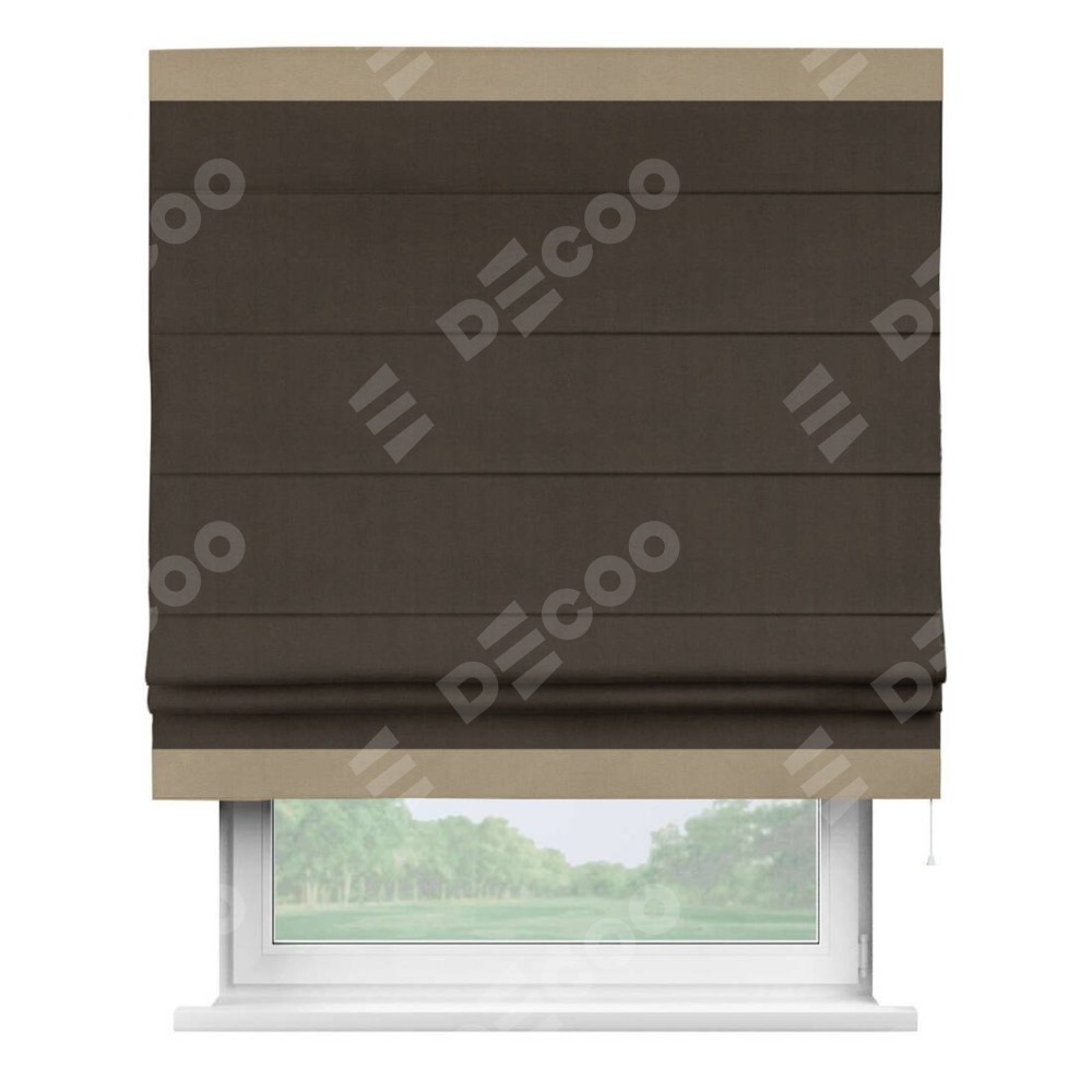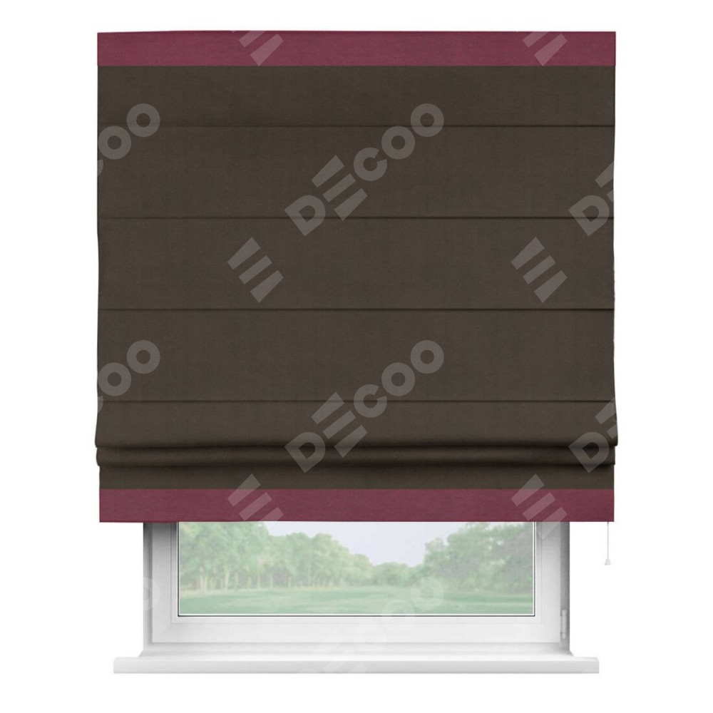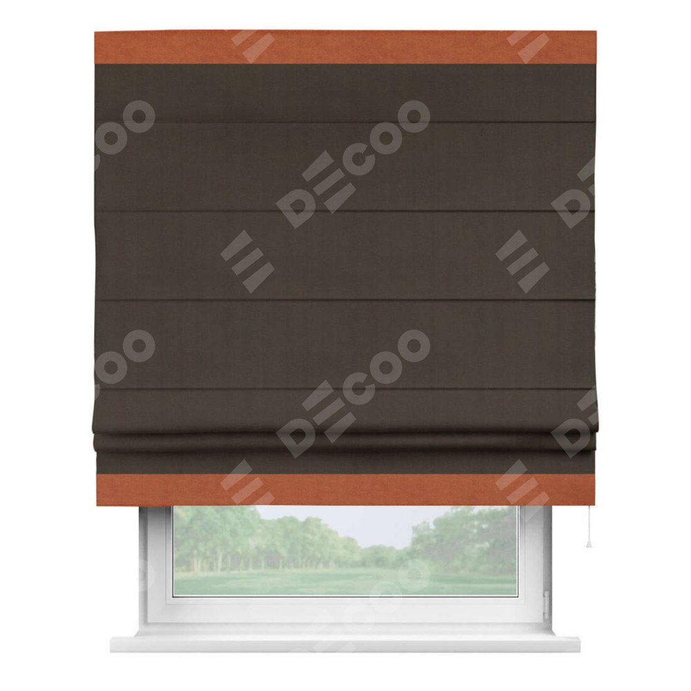Римская штора «Кортин» с кантом Горизонт, для проема, ткань вельвет тёмно-коричневый