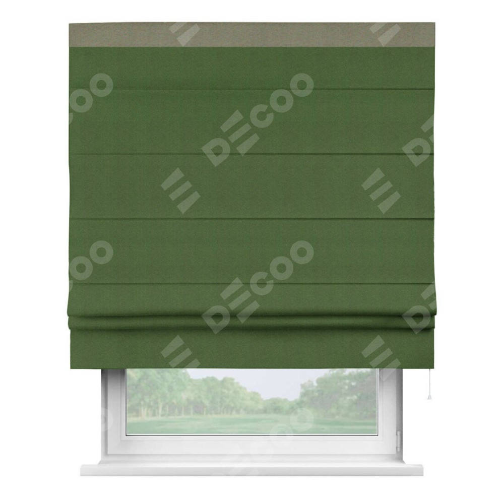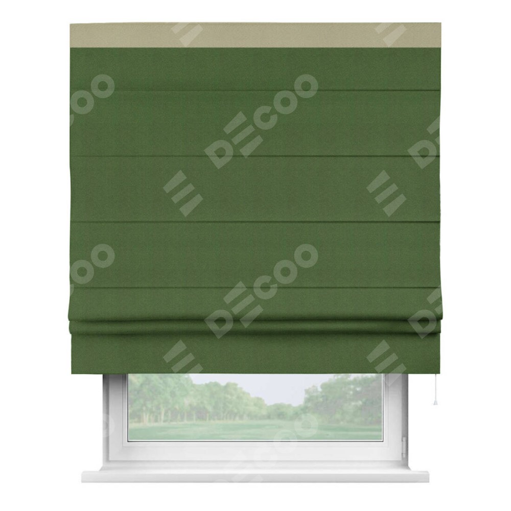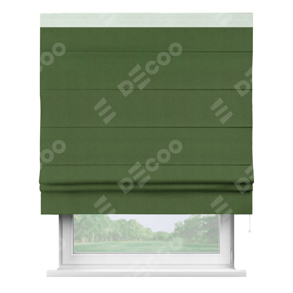 Римская штора «Кортин» с кантом Кинг, для проема, ткань блэкаут однотонный зелёный перламутр