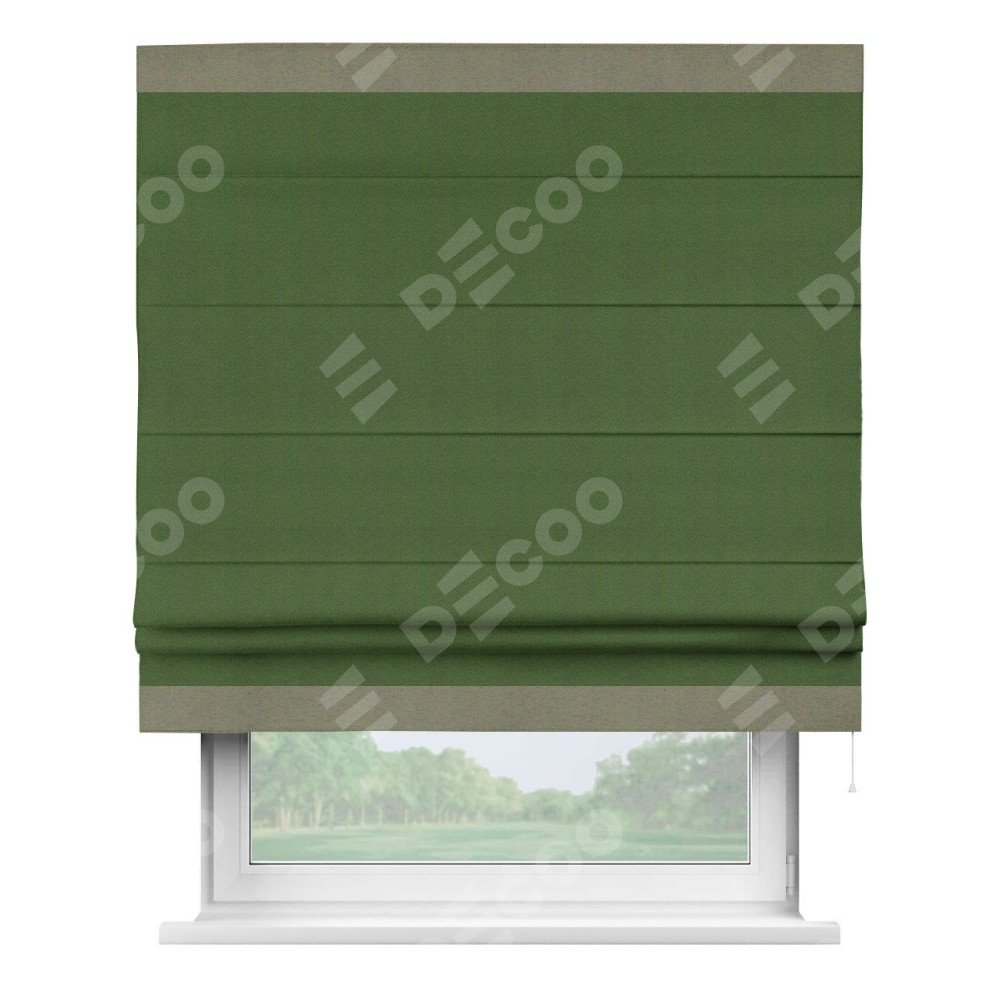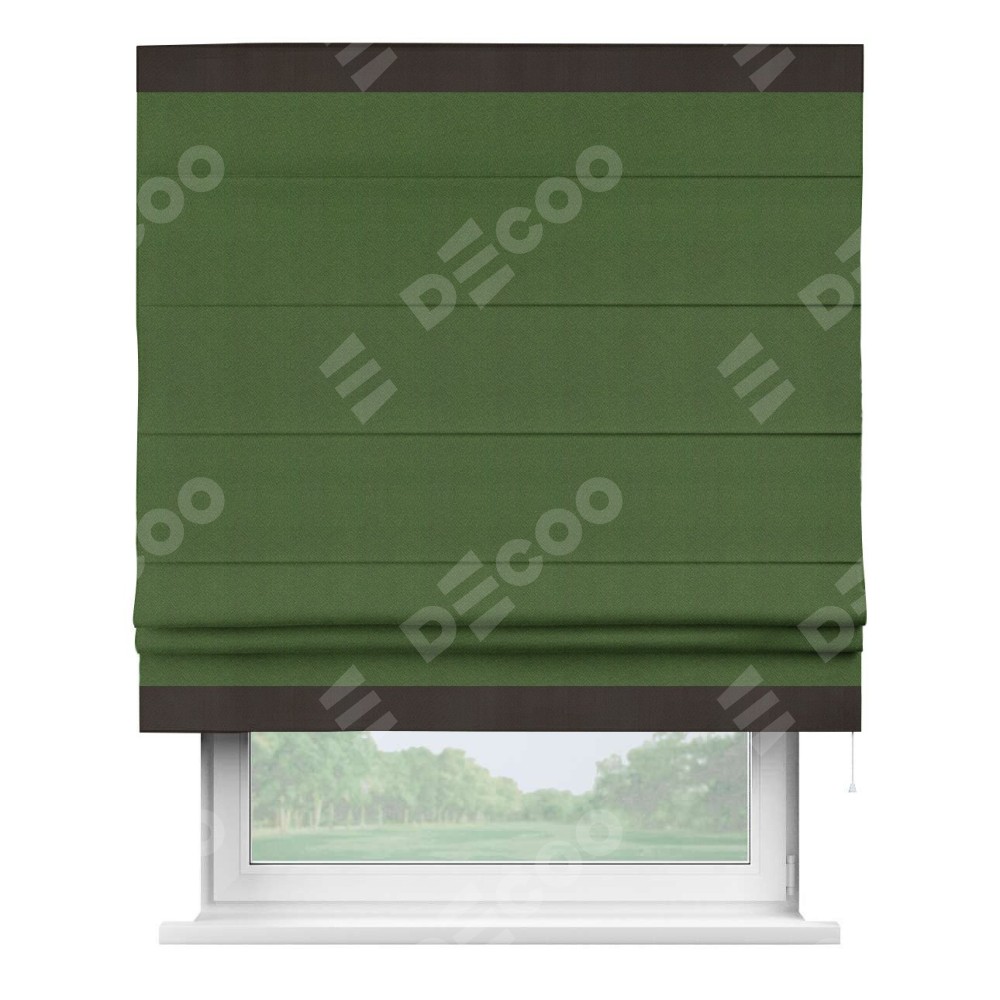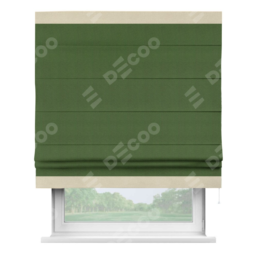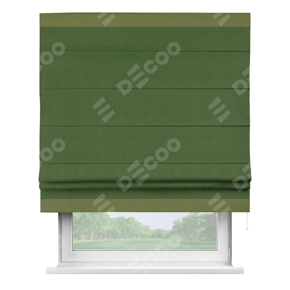 Римская штора «Кортин» с кантом Горизонт, для проема, ткань блэкаут однотонный зелёный перламутр