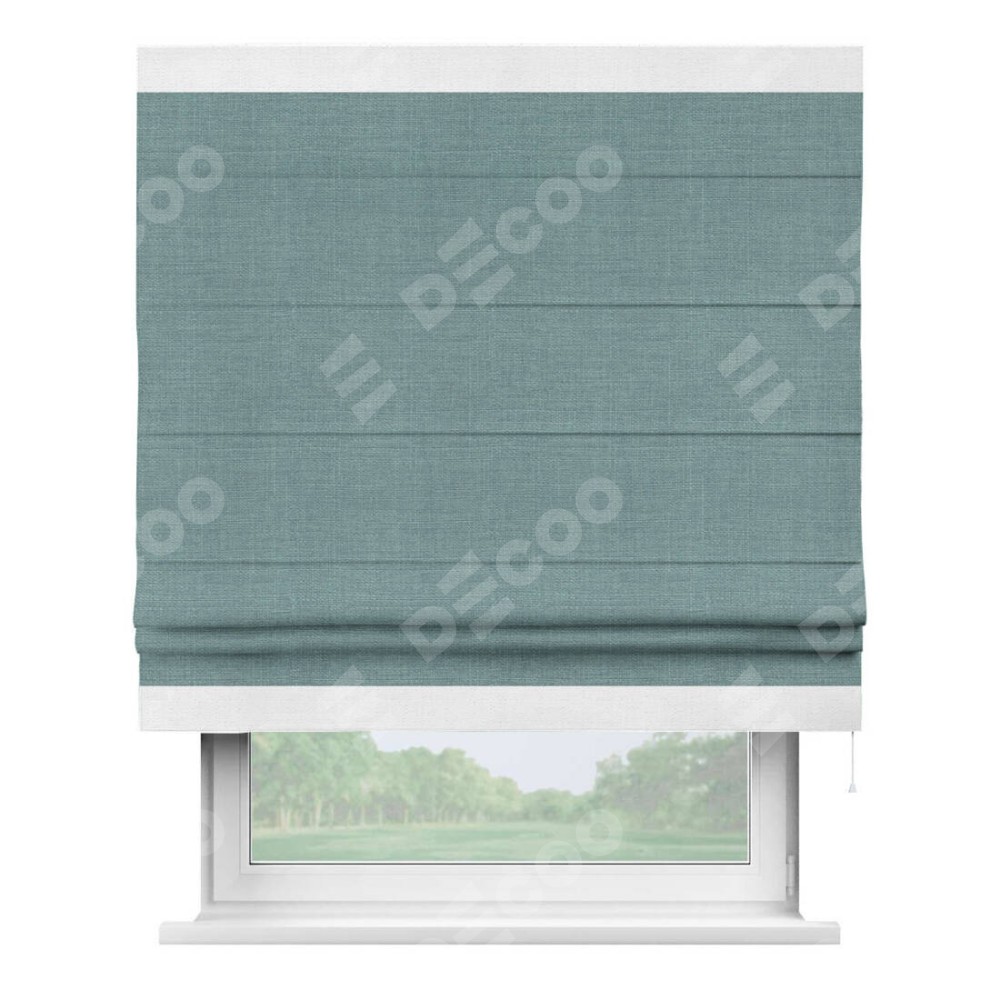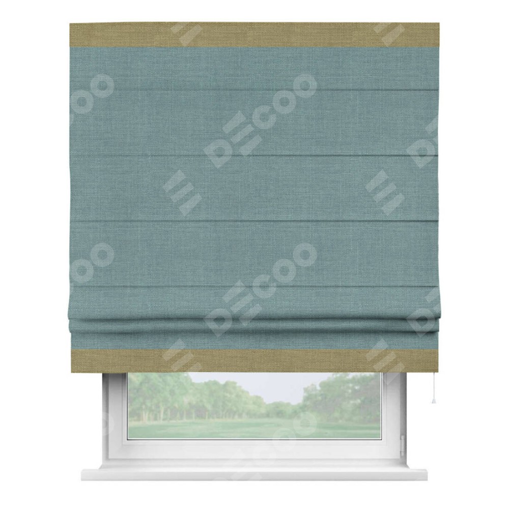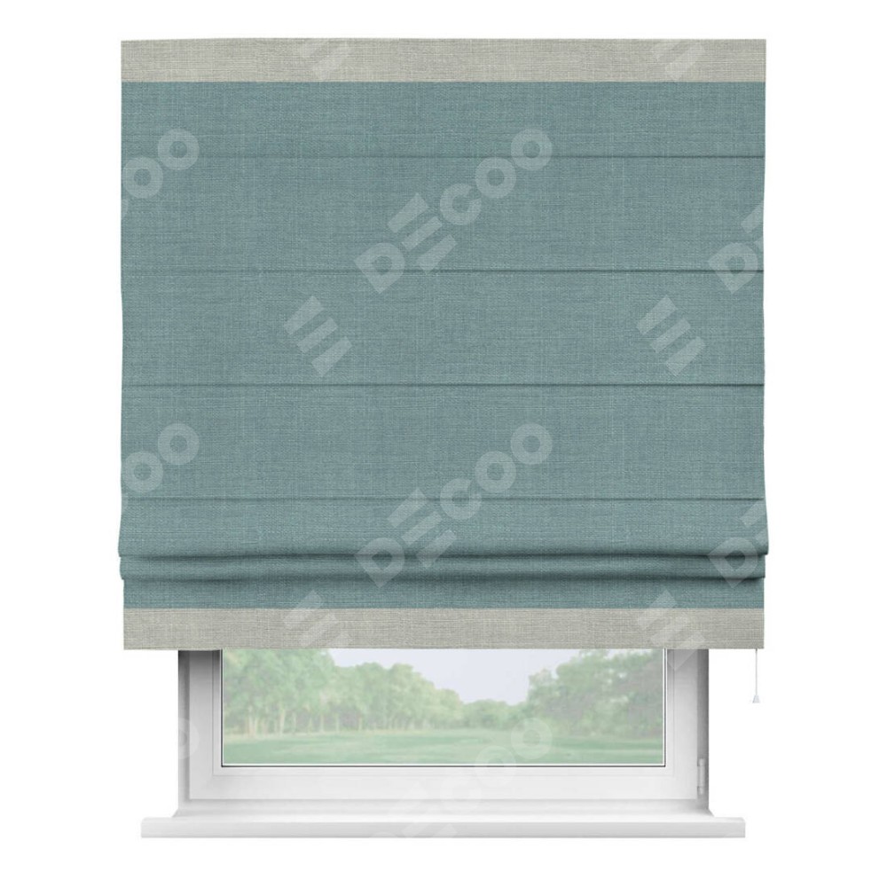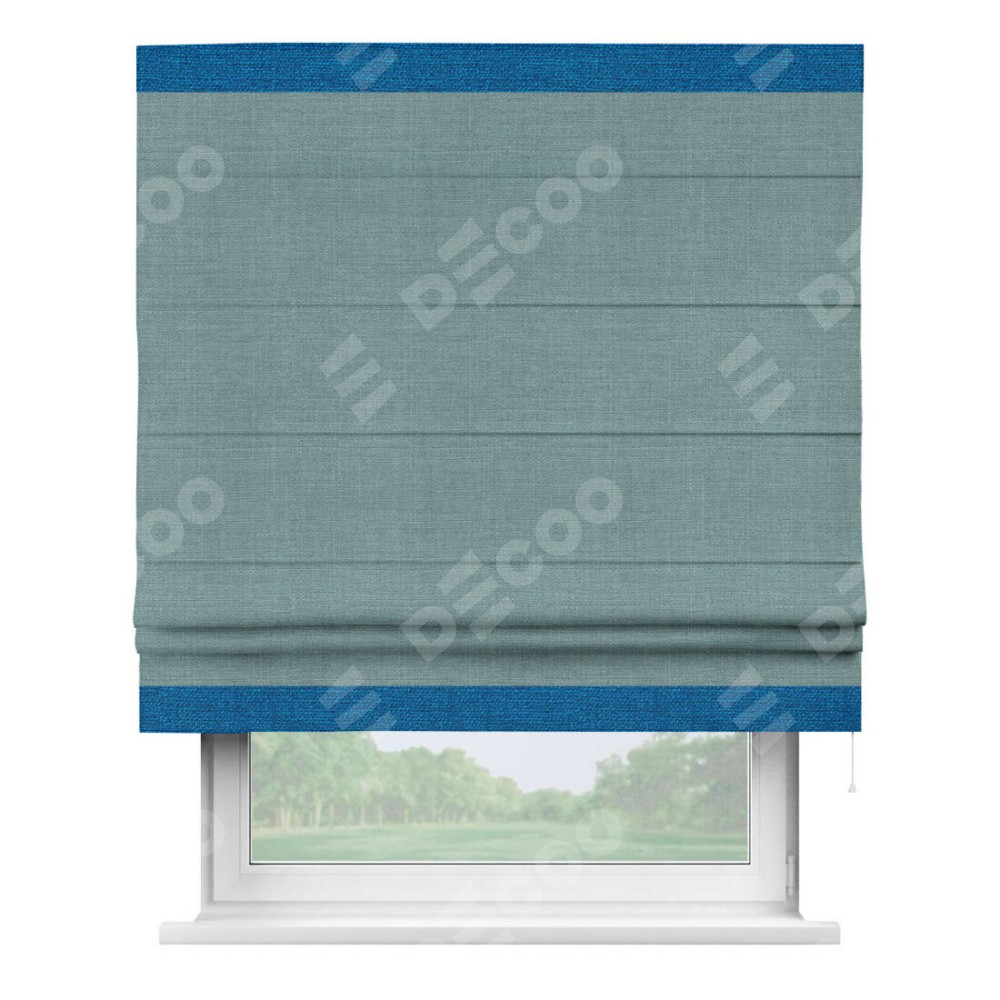 Римская штора «Кортин» с отделкой кантом Горизонт, для проема, лён, цвет голубой