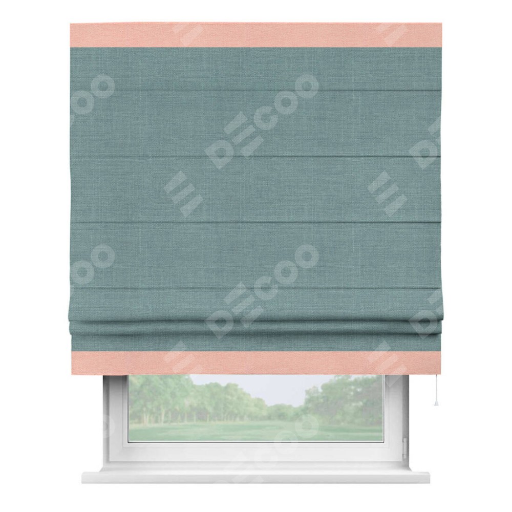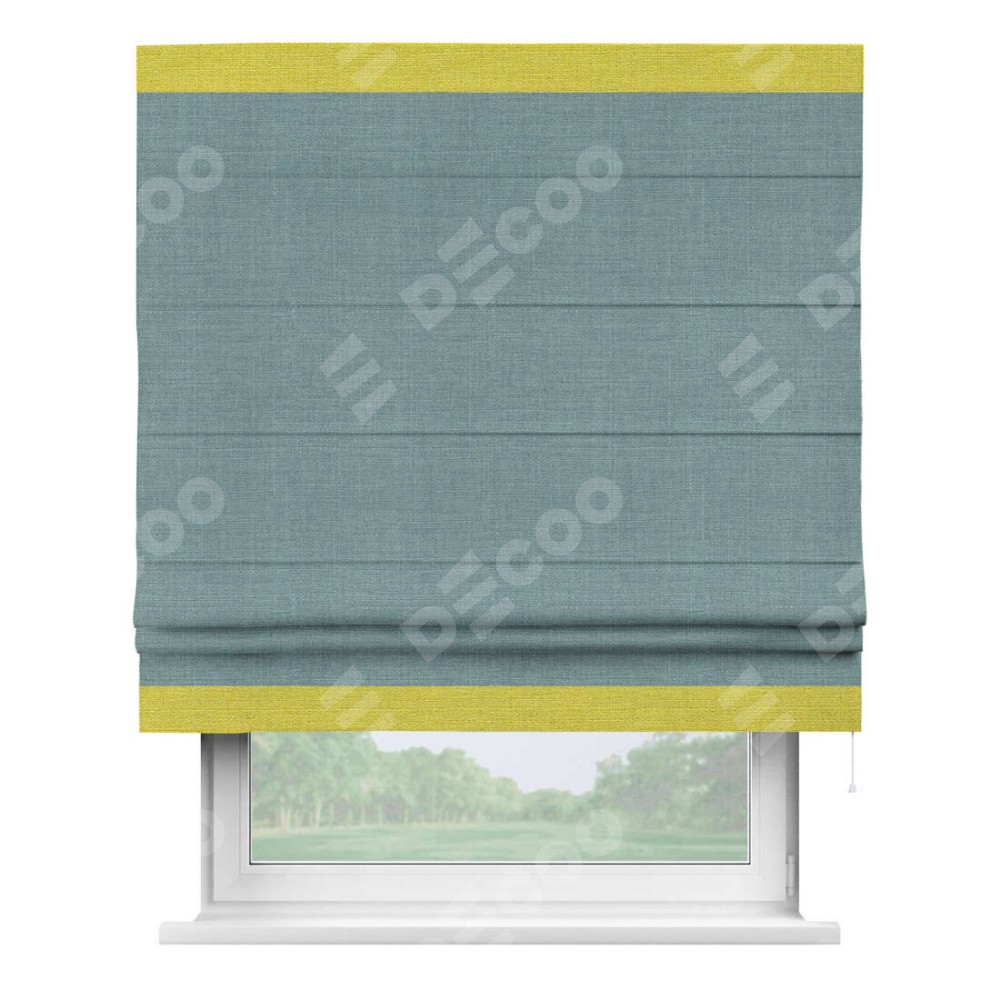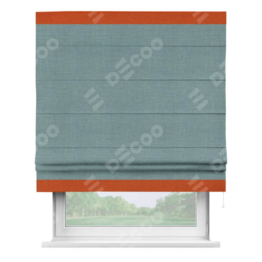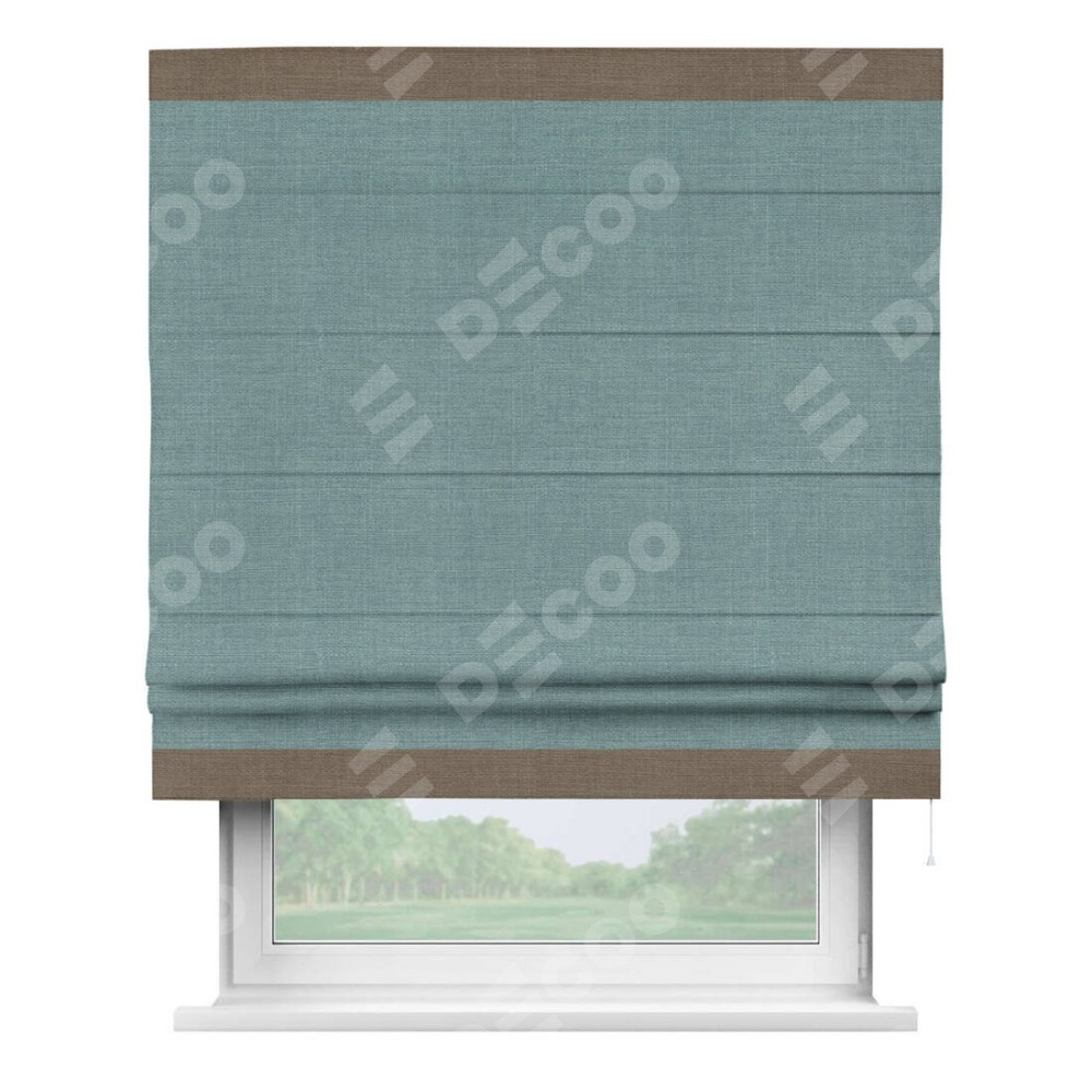 Римская штора «Кортин» с отделкой кантом Горизонт, для проема, лён, цвет голубой