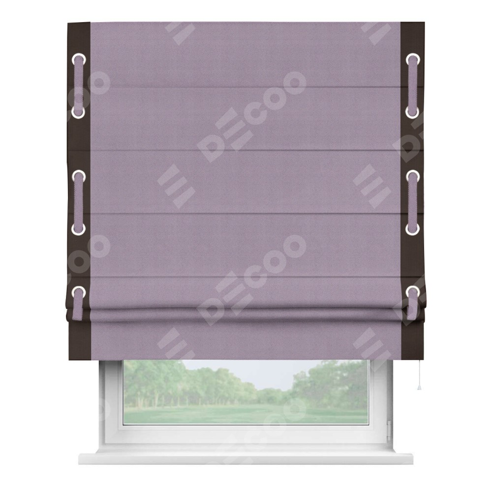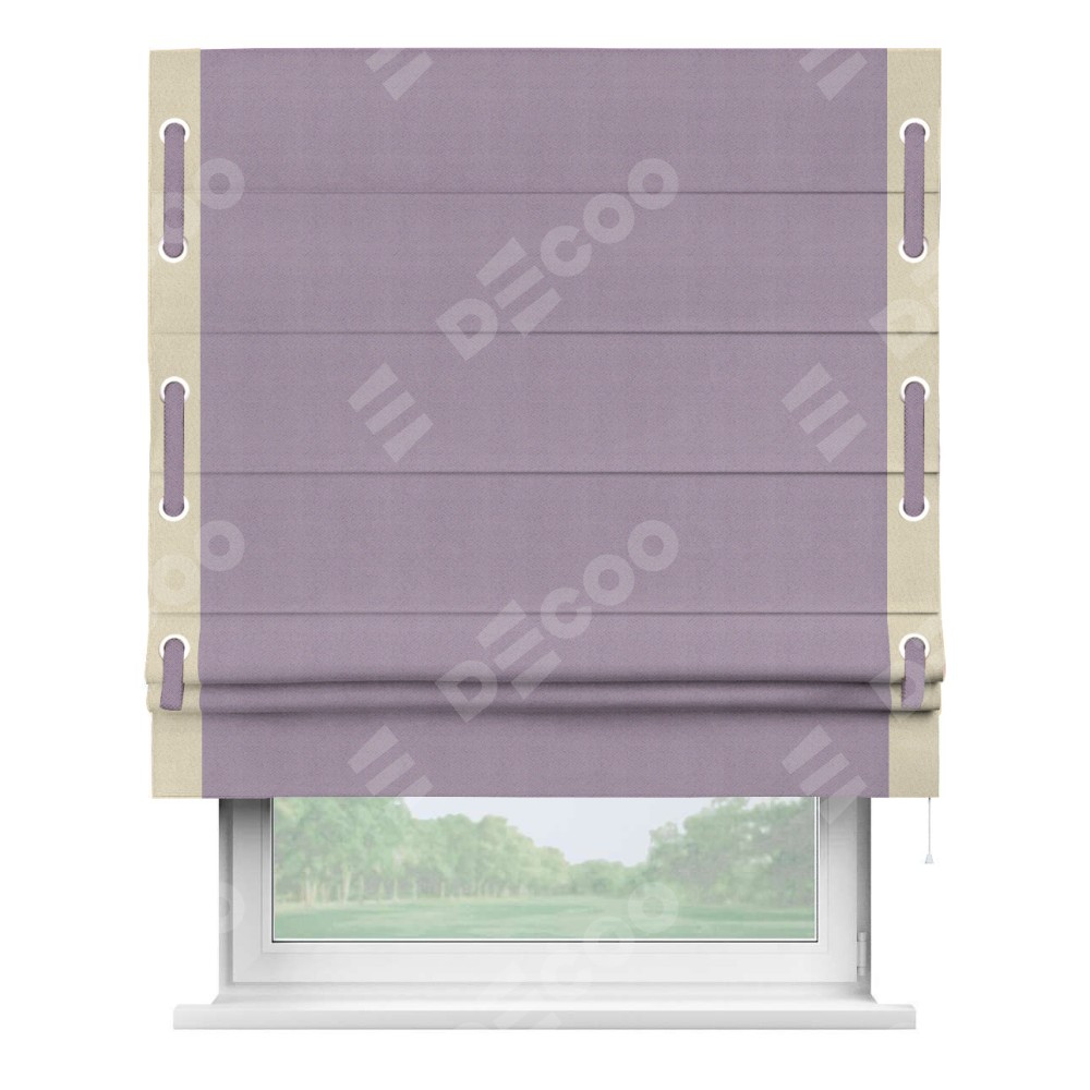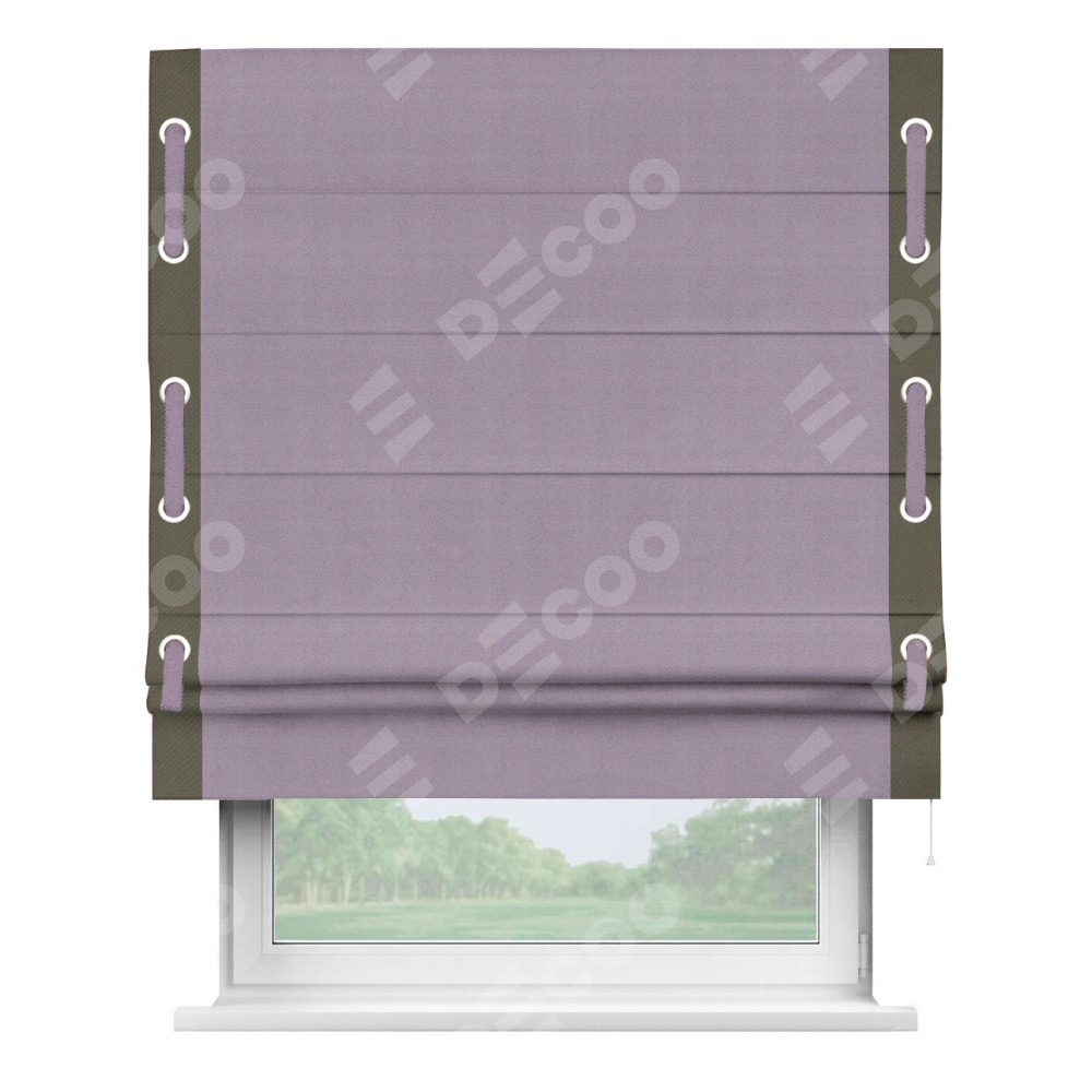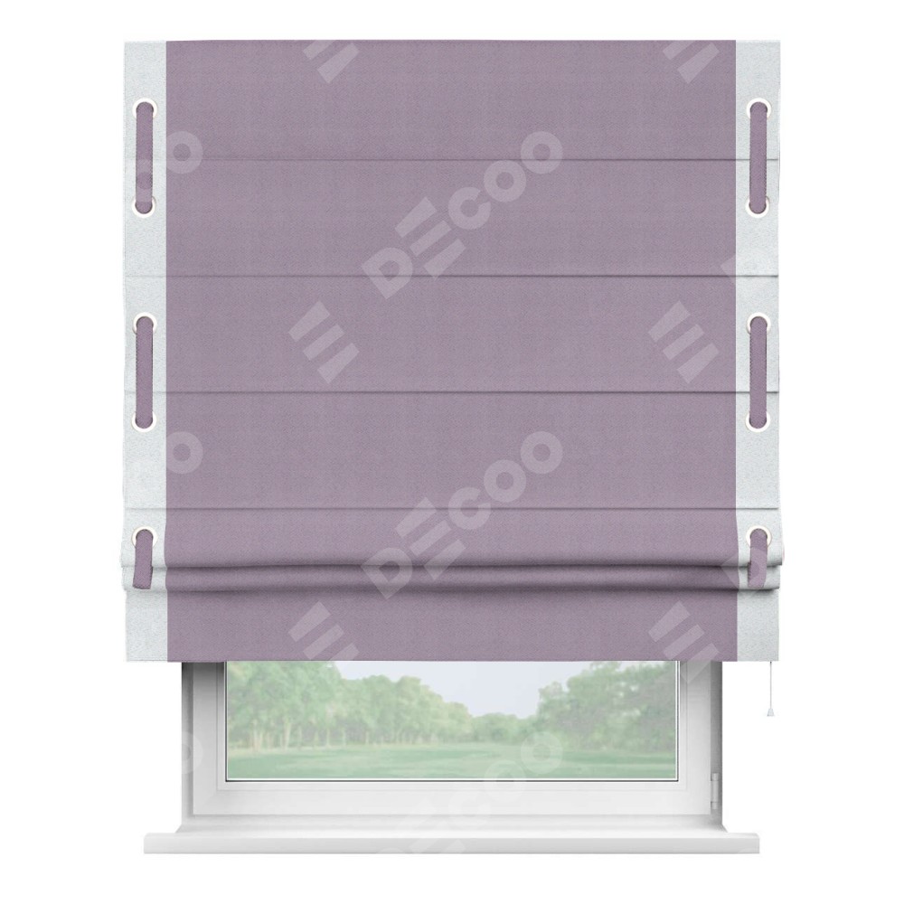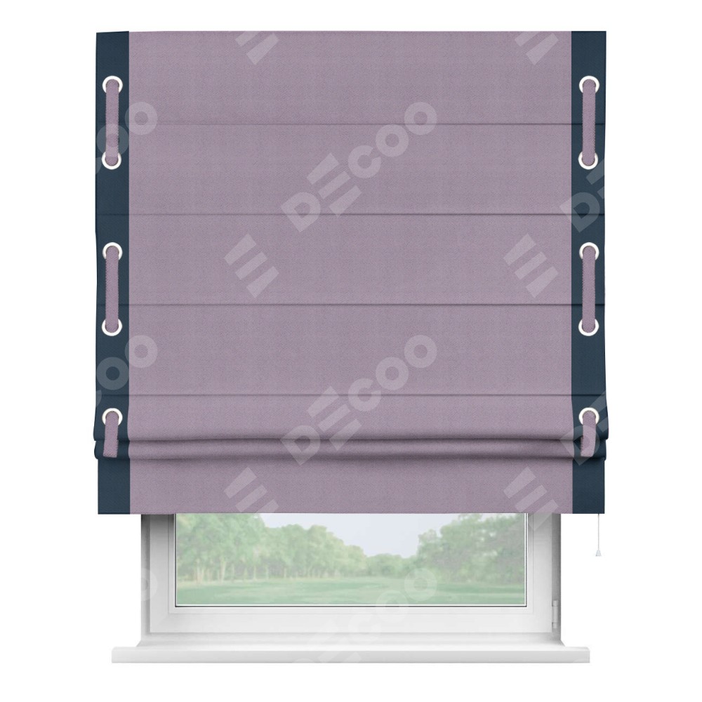 Римская штора «Кортин» с кантом Стрим Дуо (люверсы с пояском), для проема, ткань блэкаут однотонный светло-сиреневый