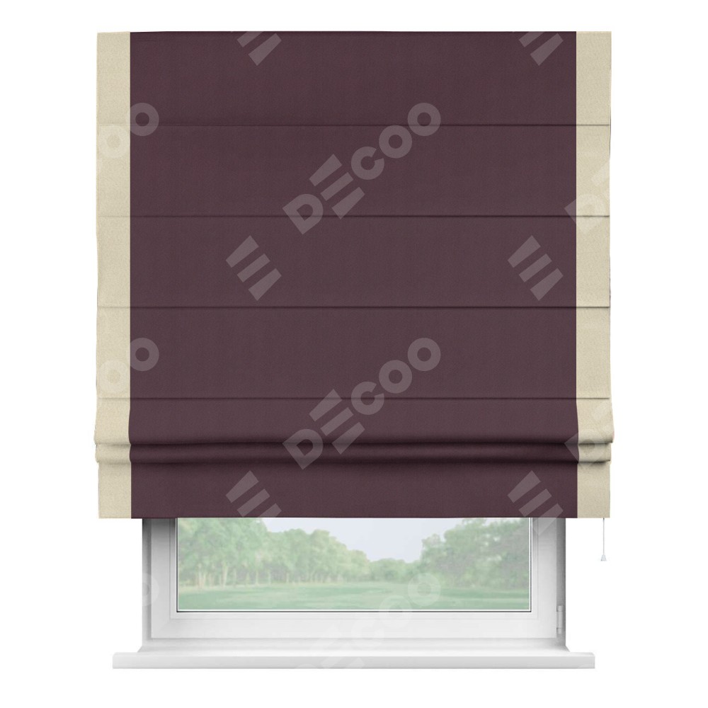 Римская штора производителя «Cortin», используется для проёма, пошита из ткани блэкаут однотонный сиреневый, артикул ткани 29333−2. Отделка шторы кантом «Стрим Дуо», ткань для канта используется из блэкаута однотонного разной расцветки на выбор. Имеет универсальный механизм и подходит для монтажа: на потолок, на стену и в нишу.