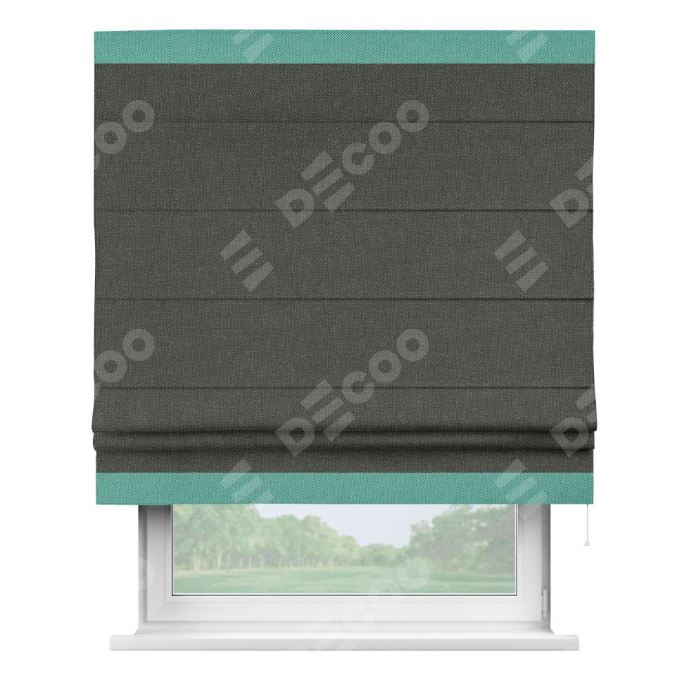 Римская штора «Кортин» с кантом Горизонт, для проема, ткань лён димаут, графитово-серый