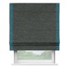 Римская штора производителя «Cortin», используется для проёма, пошита из ткани рогожка димаут графит, артикул 102−34. Отделка шторы кантом «Стрим Дуо», ткань для канта используется из рогожки димаут разной расцветки на выбор. Имеет универсальный механизм и подходит для монтажа: на потолок, на стену и в нишу.