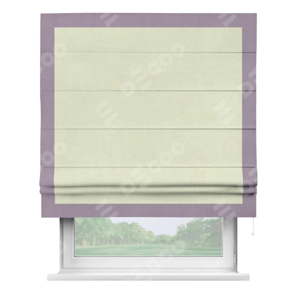 Римская штора производителя «Cortin», используется для проёма, пошита из ткани блэкаут однотонный сливочный, артикул ткани 6668−02. Отделка шторы кантом «Чесс», ткань для канта используется из блэкаута однотонного разной расцветки на выбор. Имеет универсальный механизм и подходит для монтажа: на потолок, на стену и в нишу.