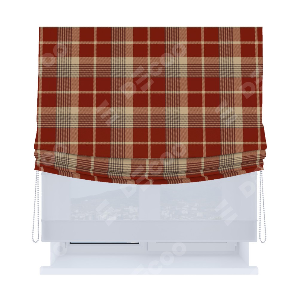 Римская штора «Кортин», день-ночь с мягкими складками, «Бежево-бордовая клетка»