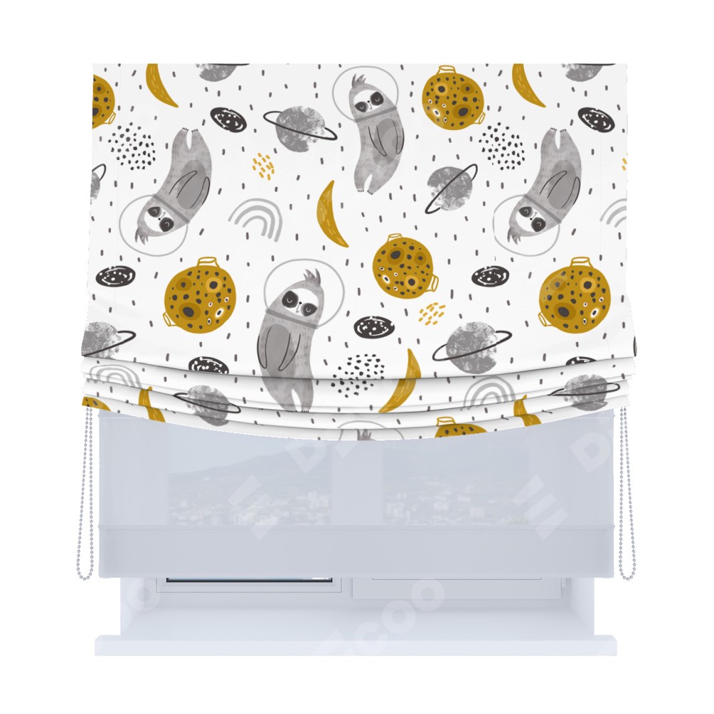 Римская штора «Кортин», день-ночь с мягкими складками, «Ленивец в шлеме»