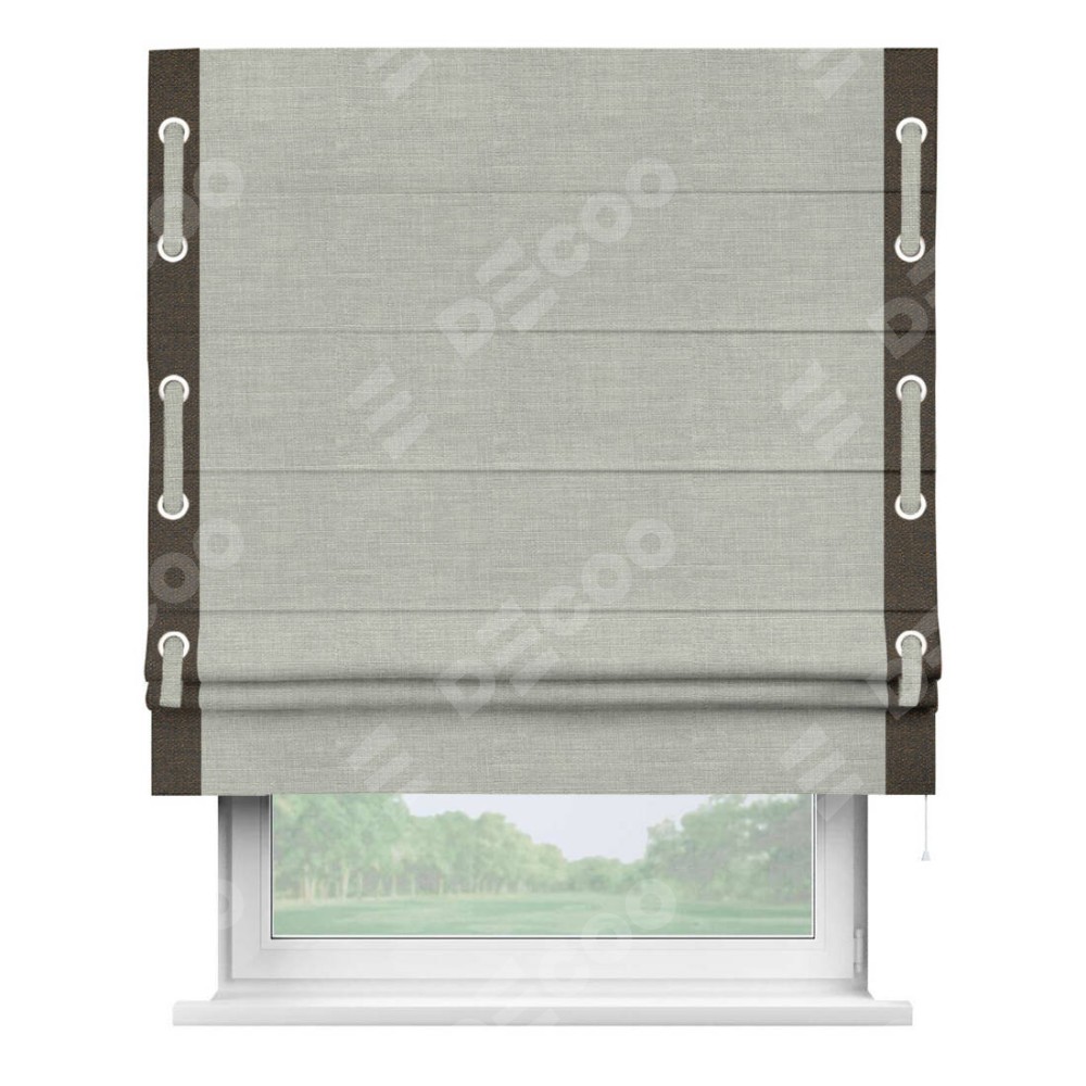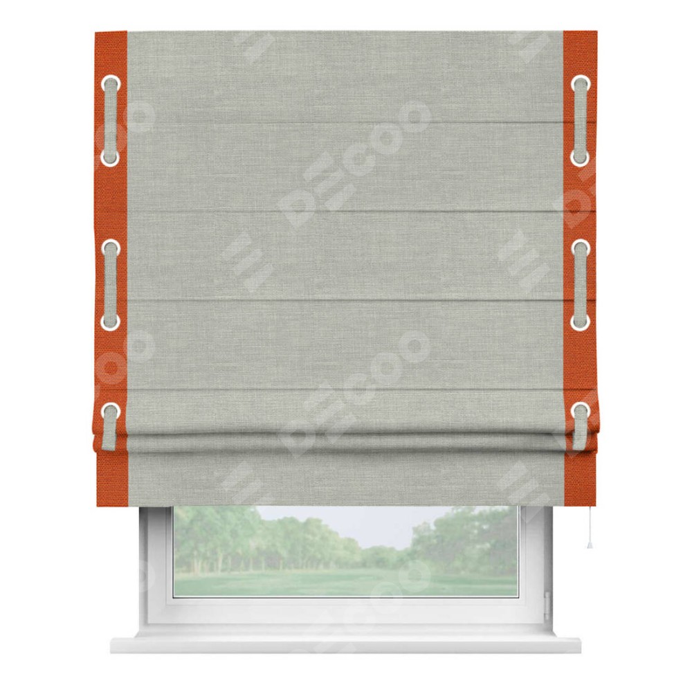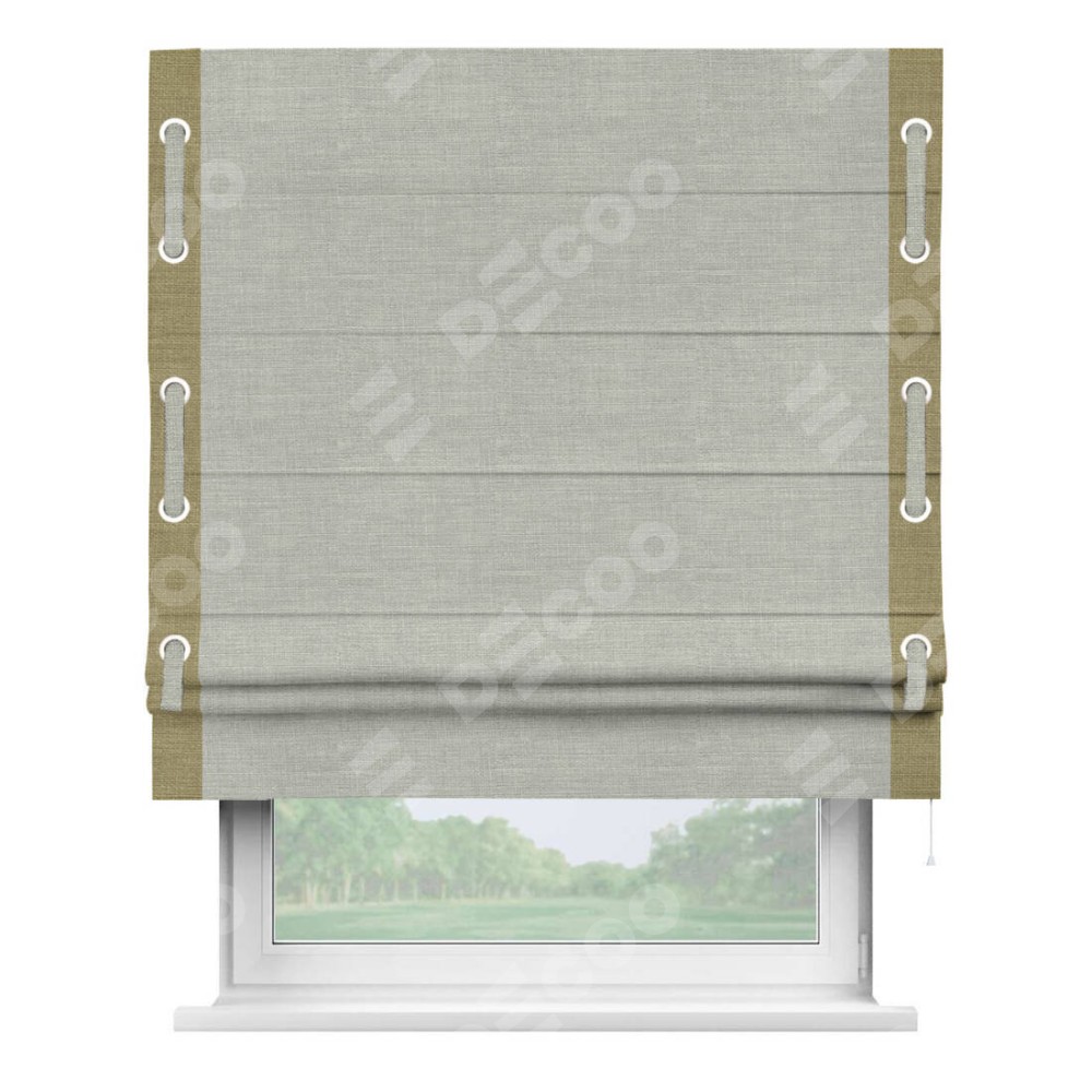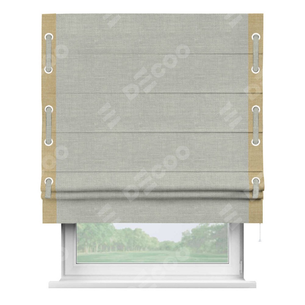 Римская штора «Кортин» с кантом Стрим Дуо (люверсы с пояском), для проема, ткань лён серый