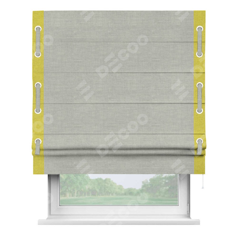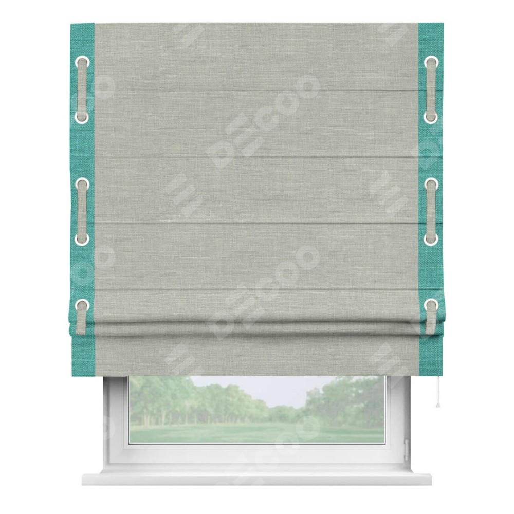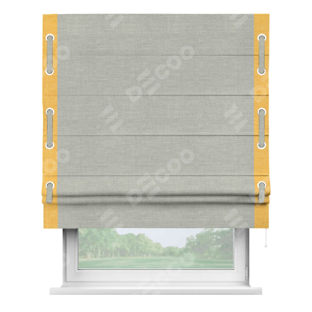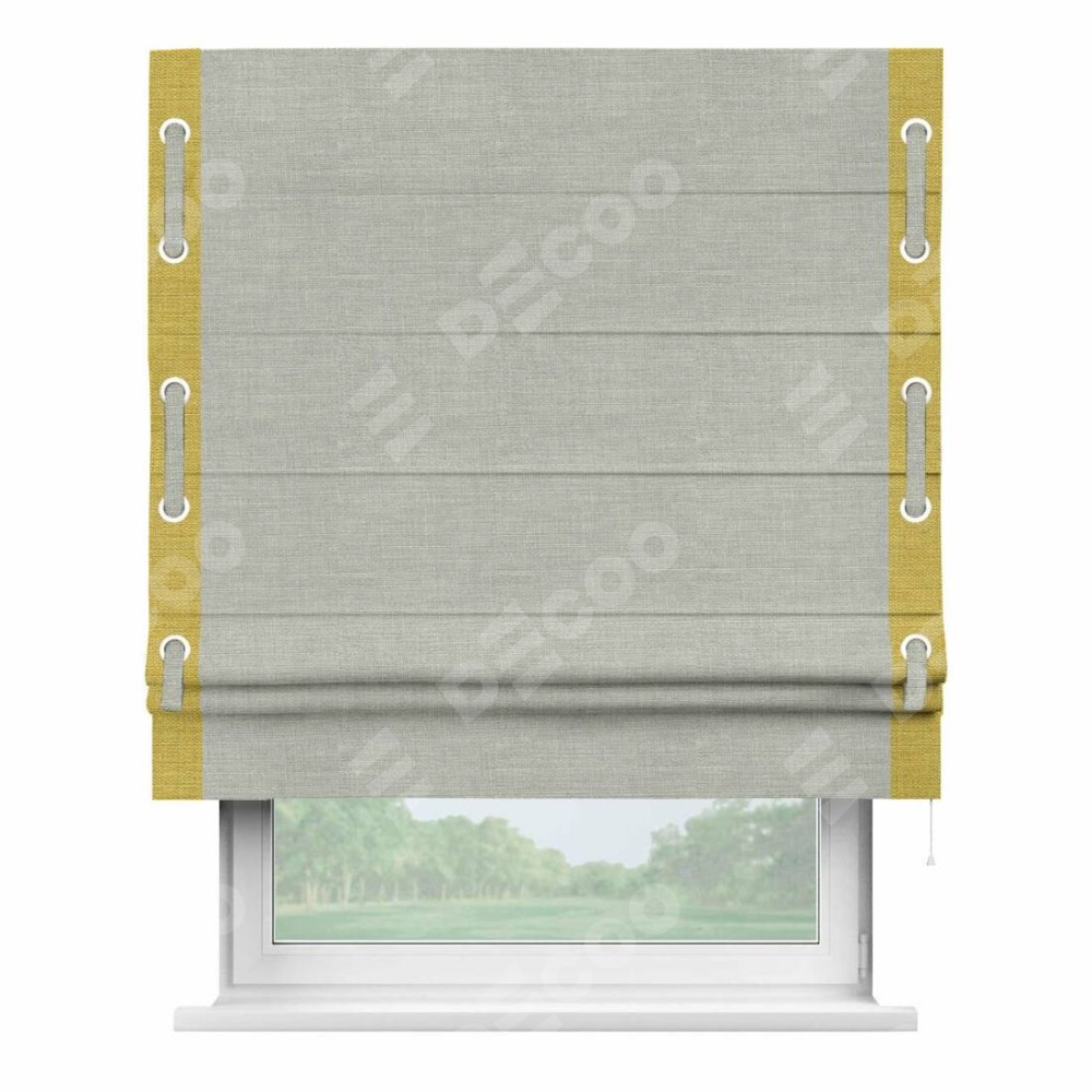 Римская штора «Кортин» с кантом Стрим Дуо (люверсы с пояском), для проема, ткань лён серый