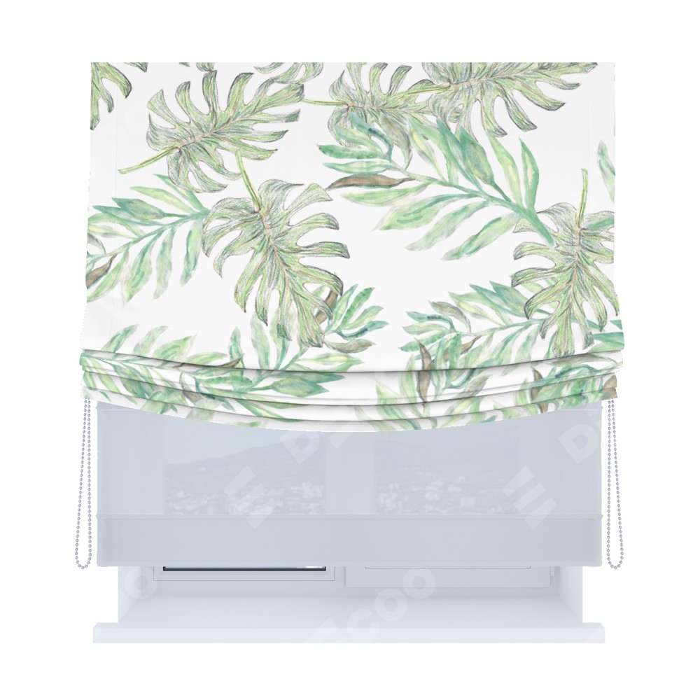 Римская штора «Кортин», день-ночь с мягкими складками, «Листья монстеры»