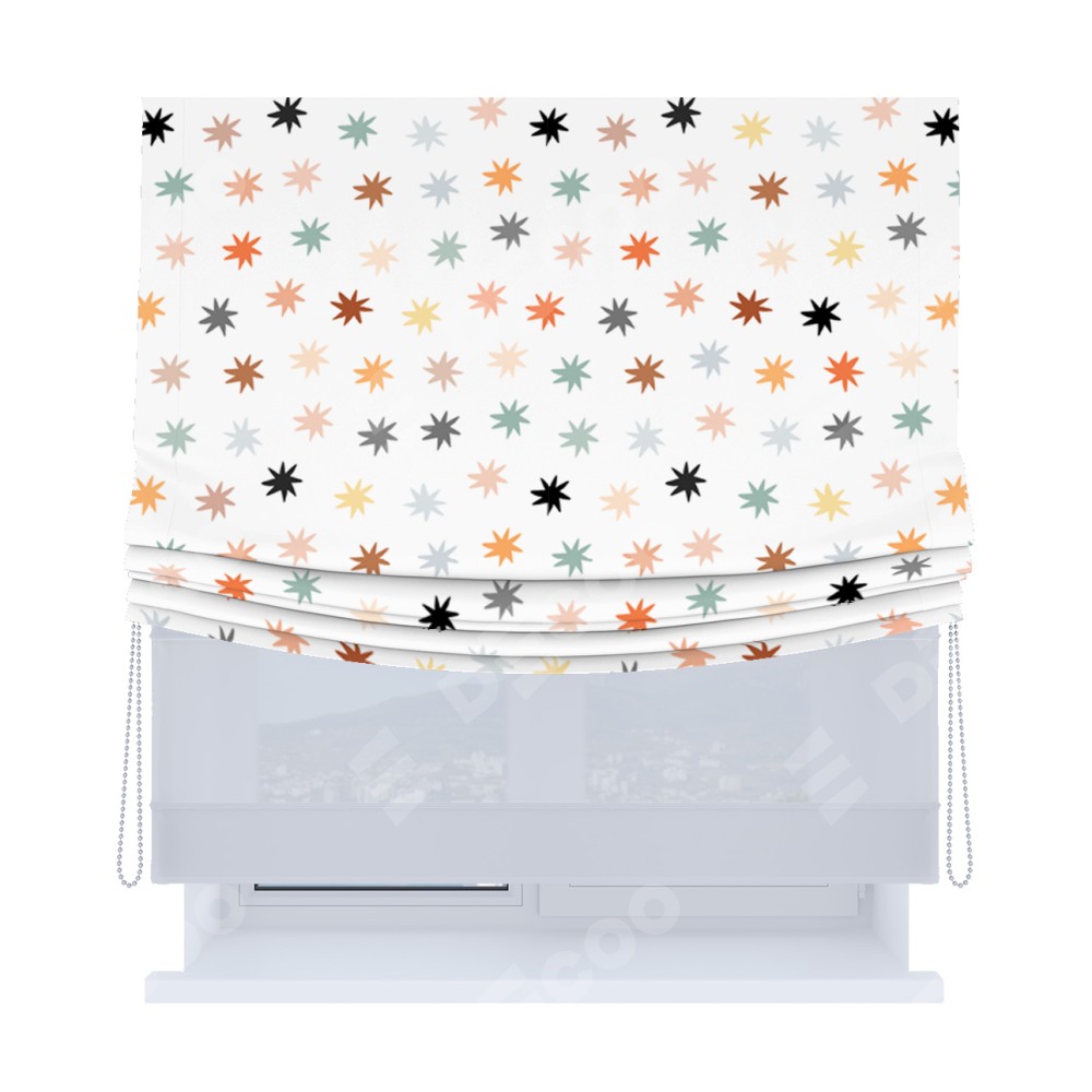 Римская штора «Кортин», день-ночь с мягкими складками, «Разноцветные звёзды»