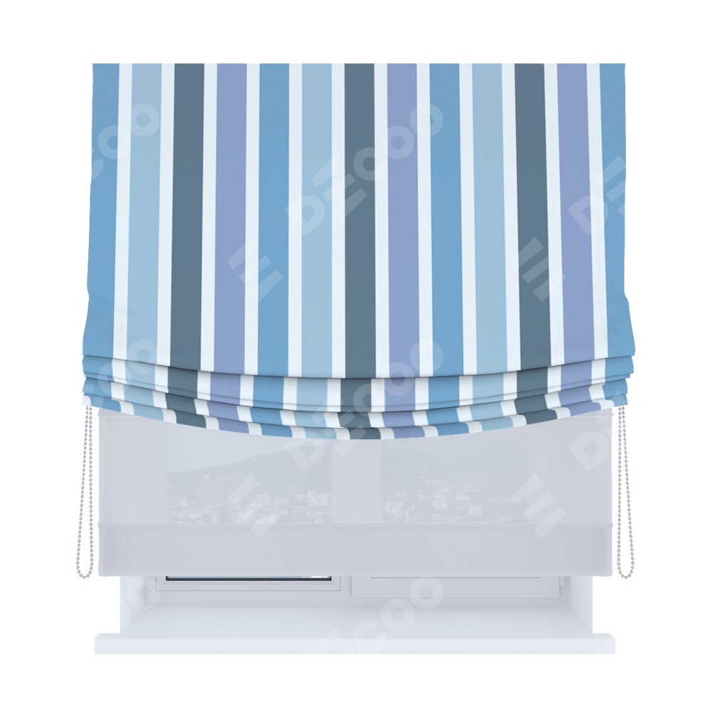 Римская штора «Кортин», день-ночь с мягкими складками, «Сине-голубые вертикальные полоски»
