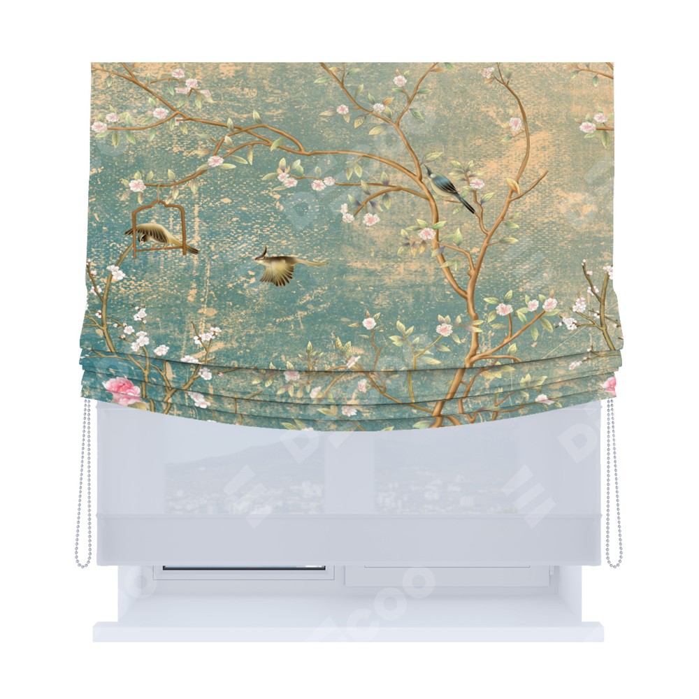 Римская штора «Кортин», день-ночь с мягкими складками, «Цветущий сад»
