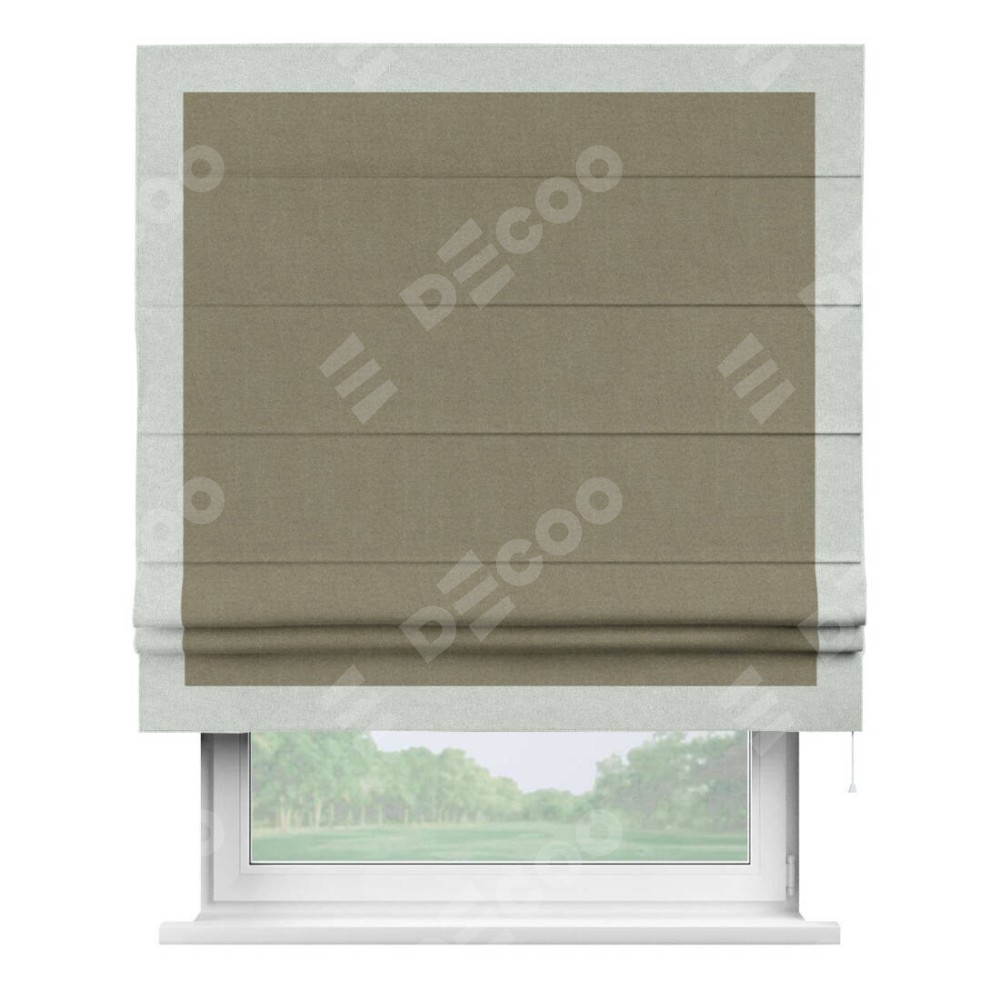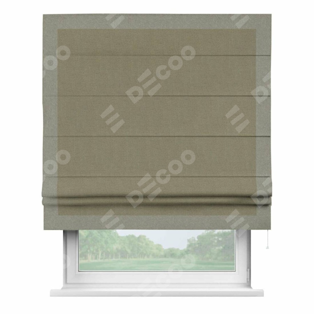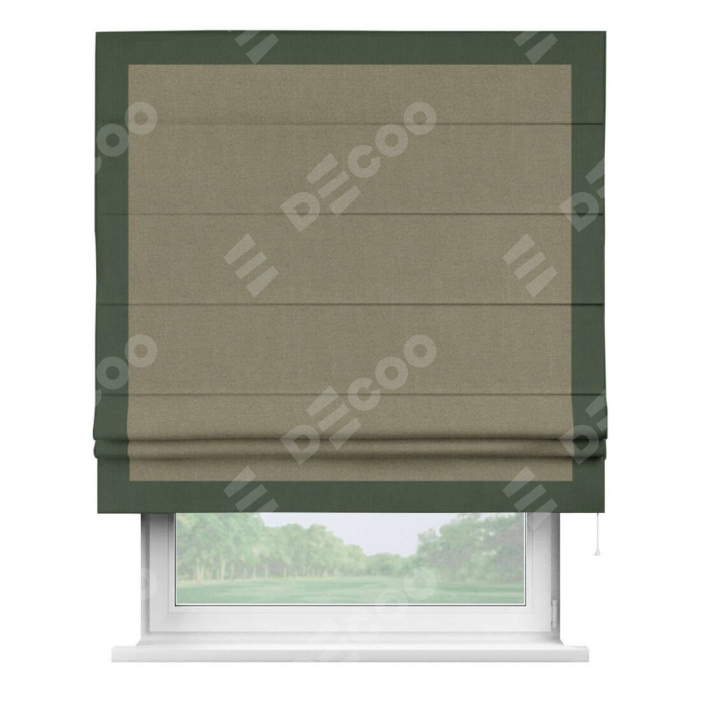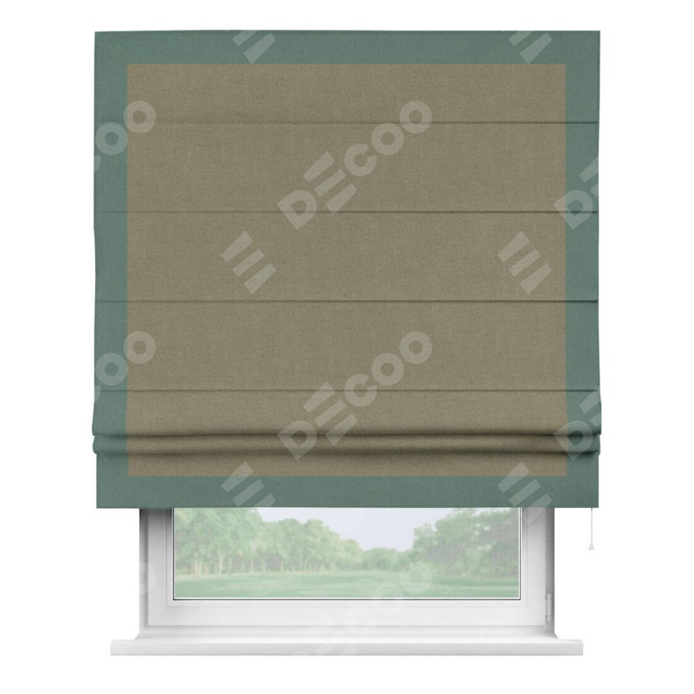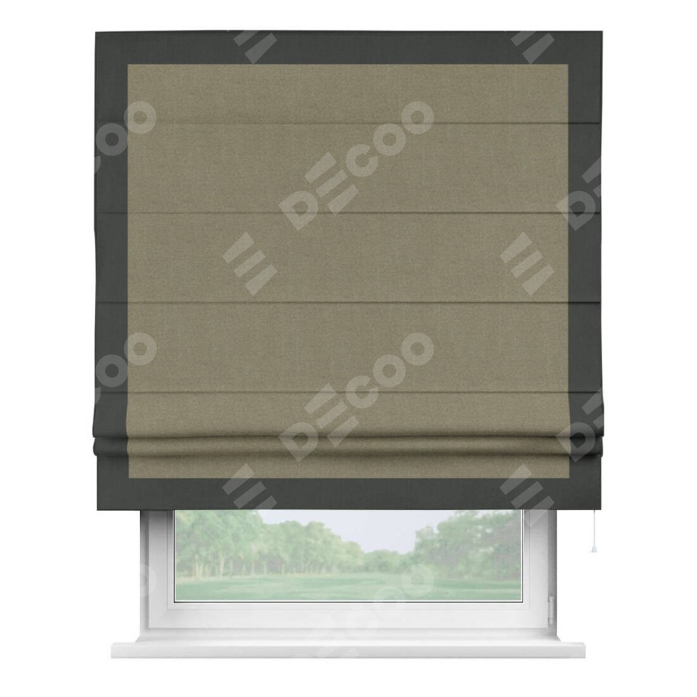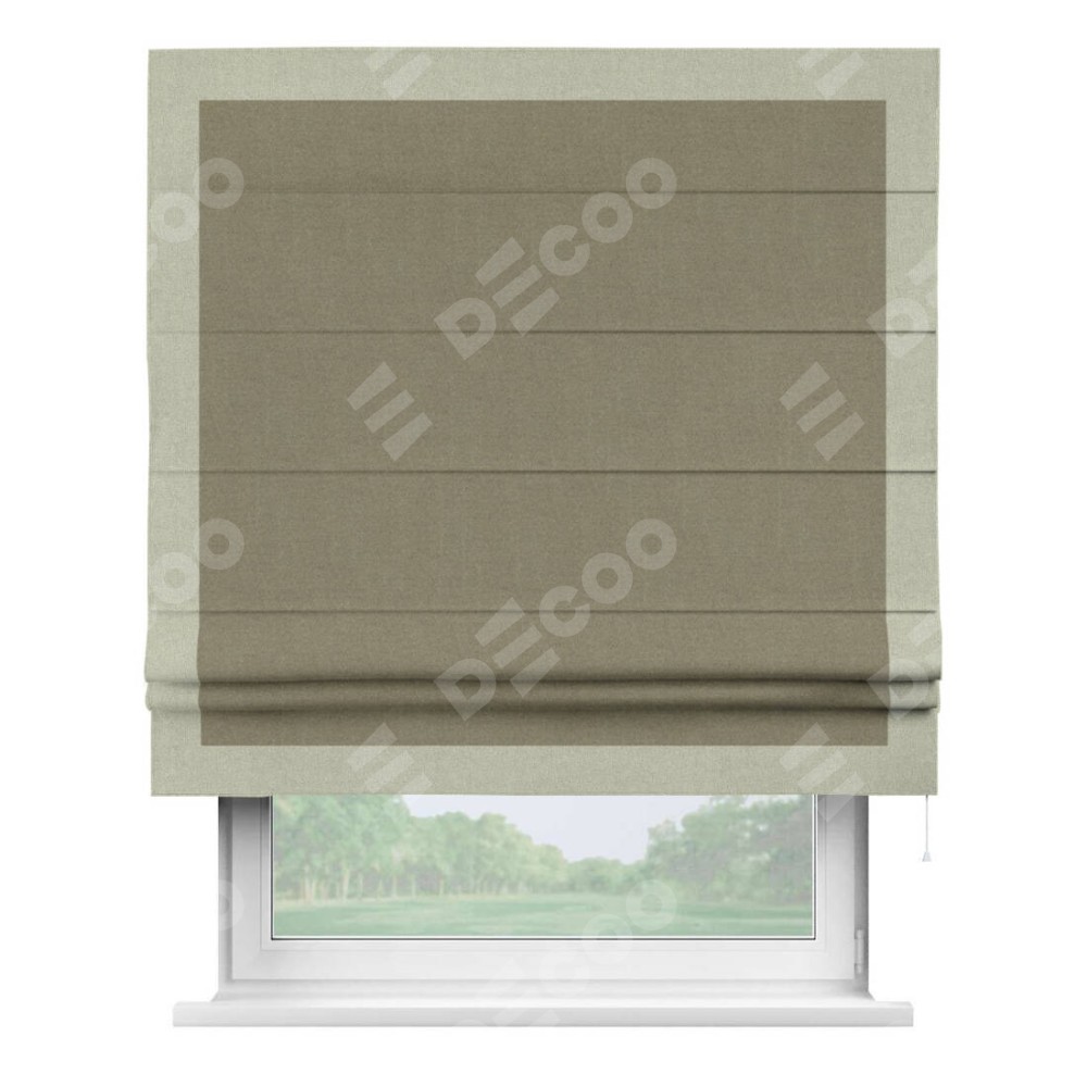 Римская штора «Кортин» с кантом Чесс, для проема, лён блэкаут бежевый