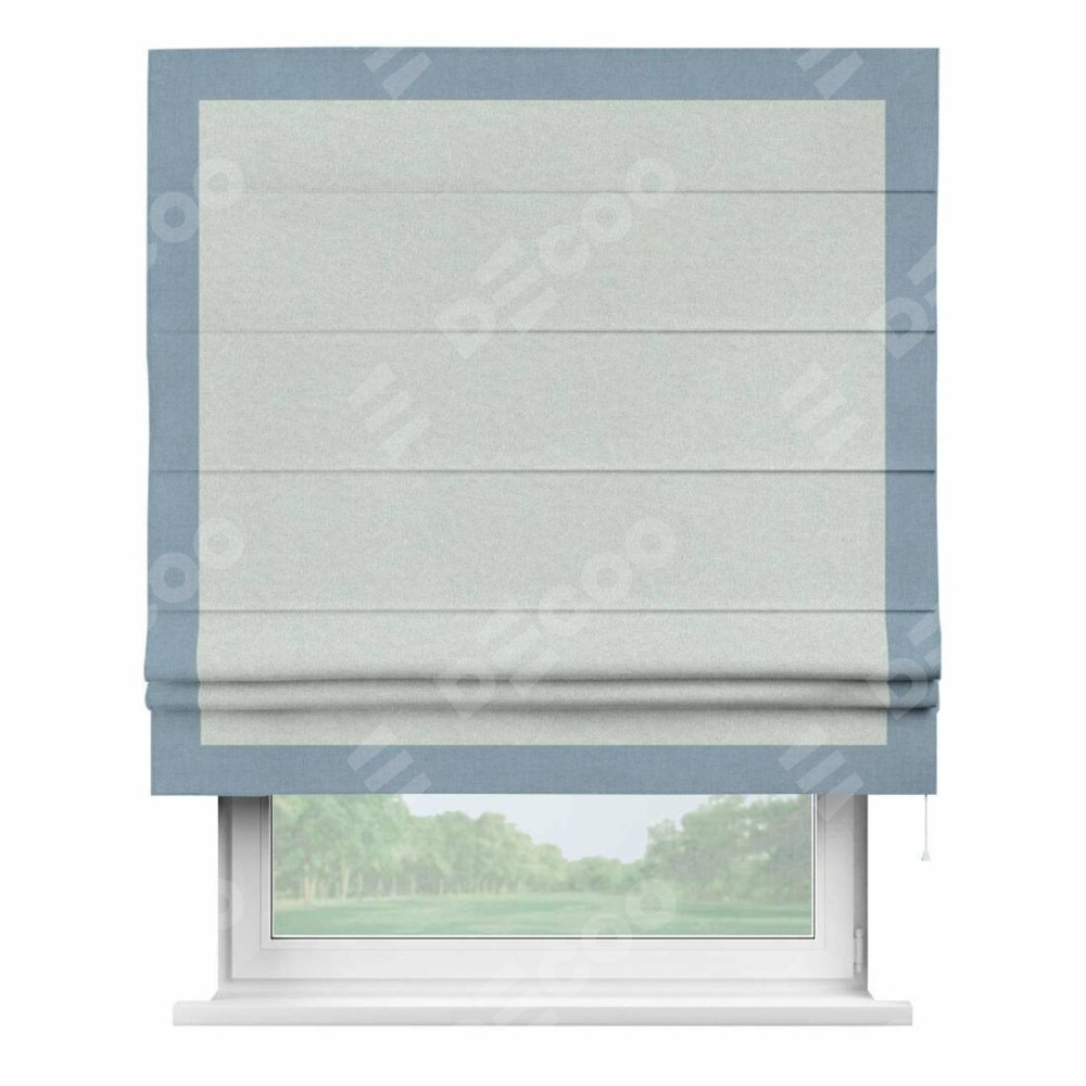 Римская штора производителя «Cortin», используется для проёма, пошита из ткани лён блэкаут белый, артикул 69451. Отделка шторы кантом «Чесс», ткань для канта используется из льна разной расцветки на выбор. Имеет универсальный механизм и подходит для монтажа: на потолок, на стену и в нишу.