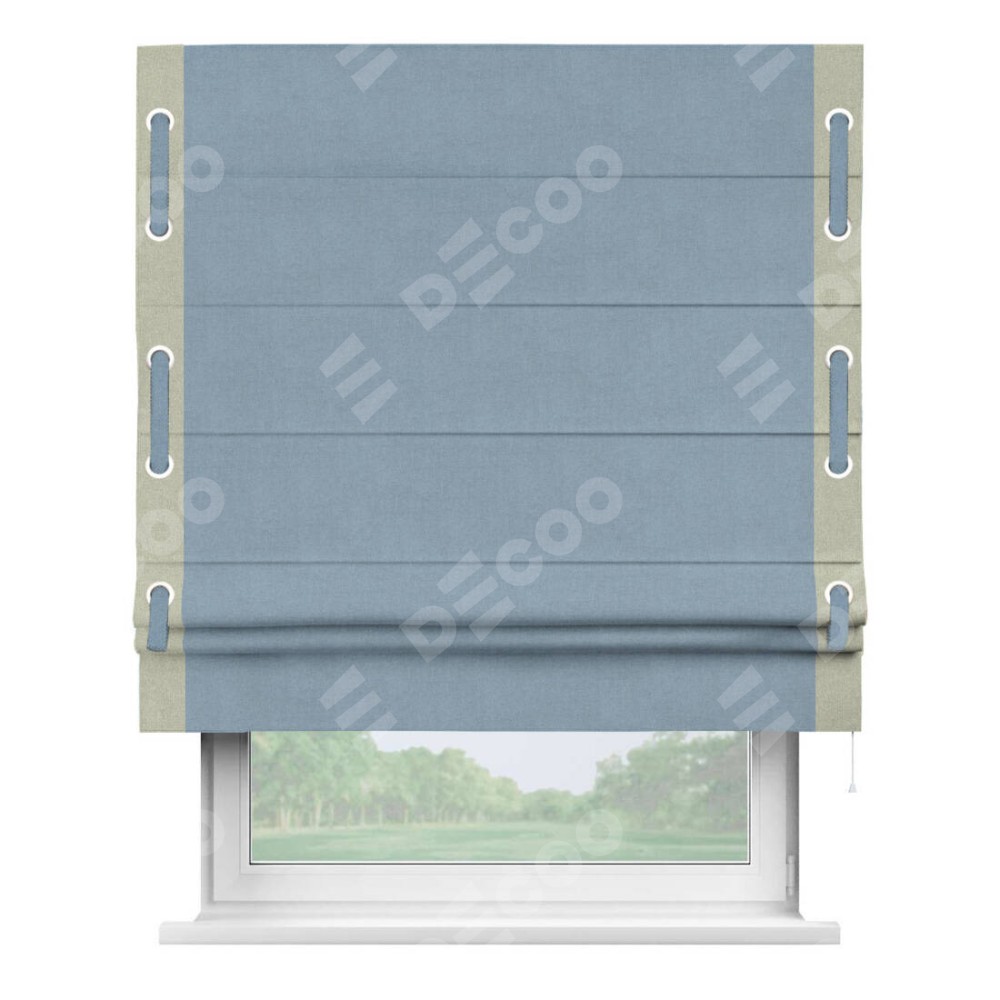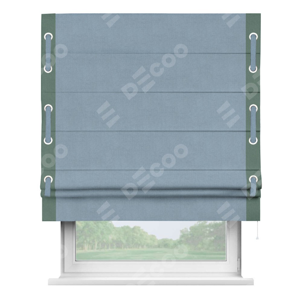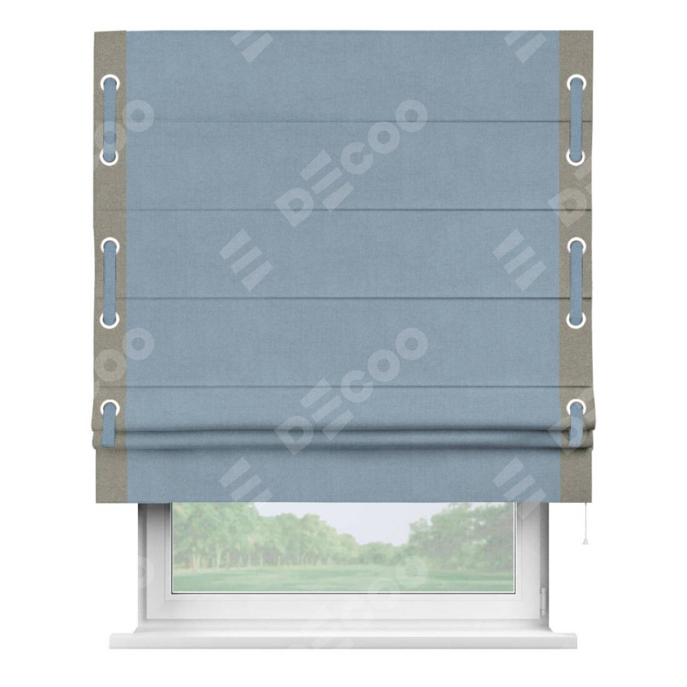 Римская штора «Кортин» с кантом Стрим Дуо (люверсы с пояском), для проема, лён блэкаут голубой