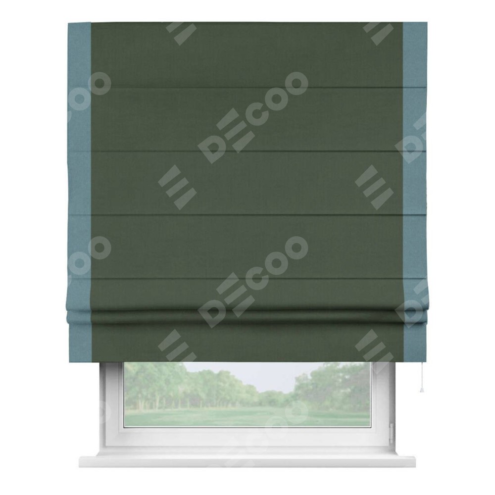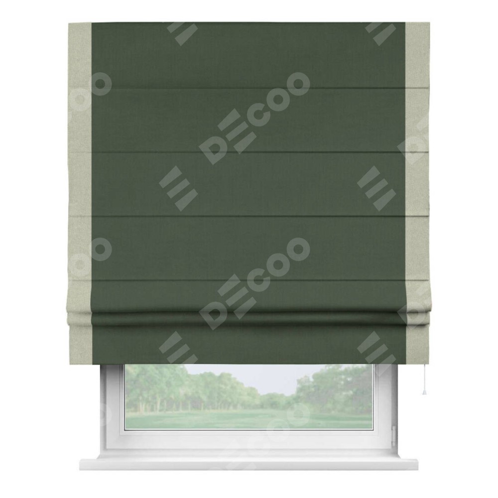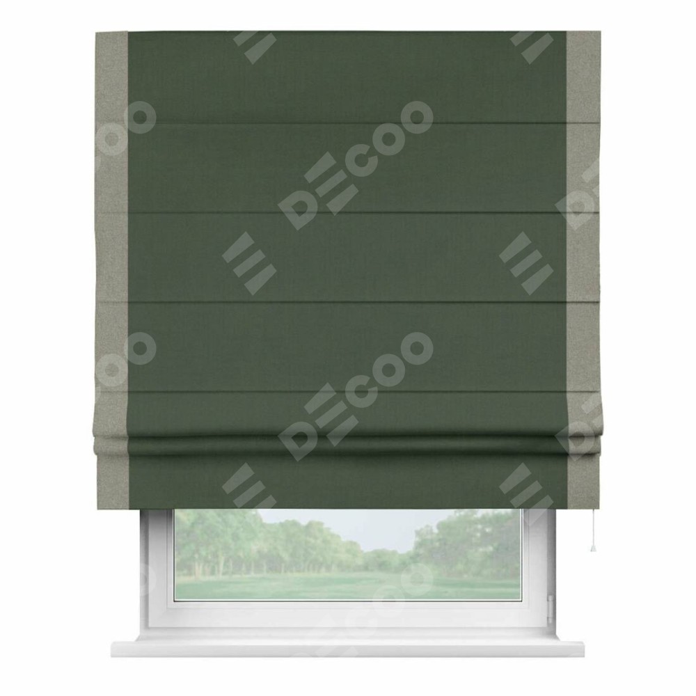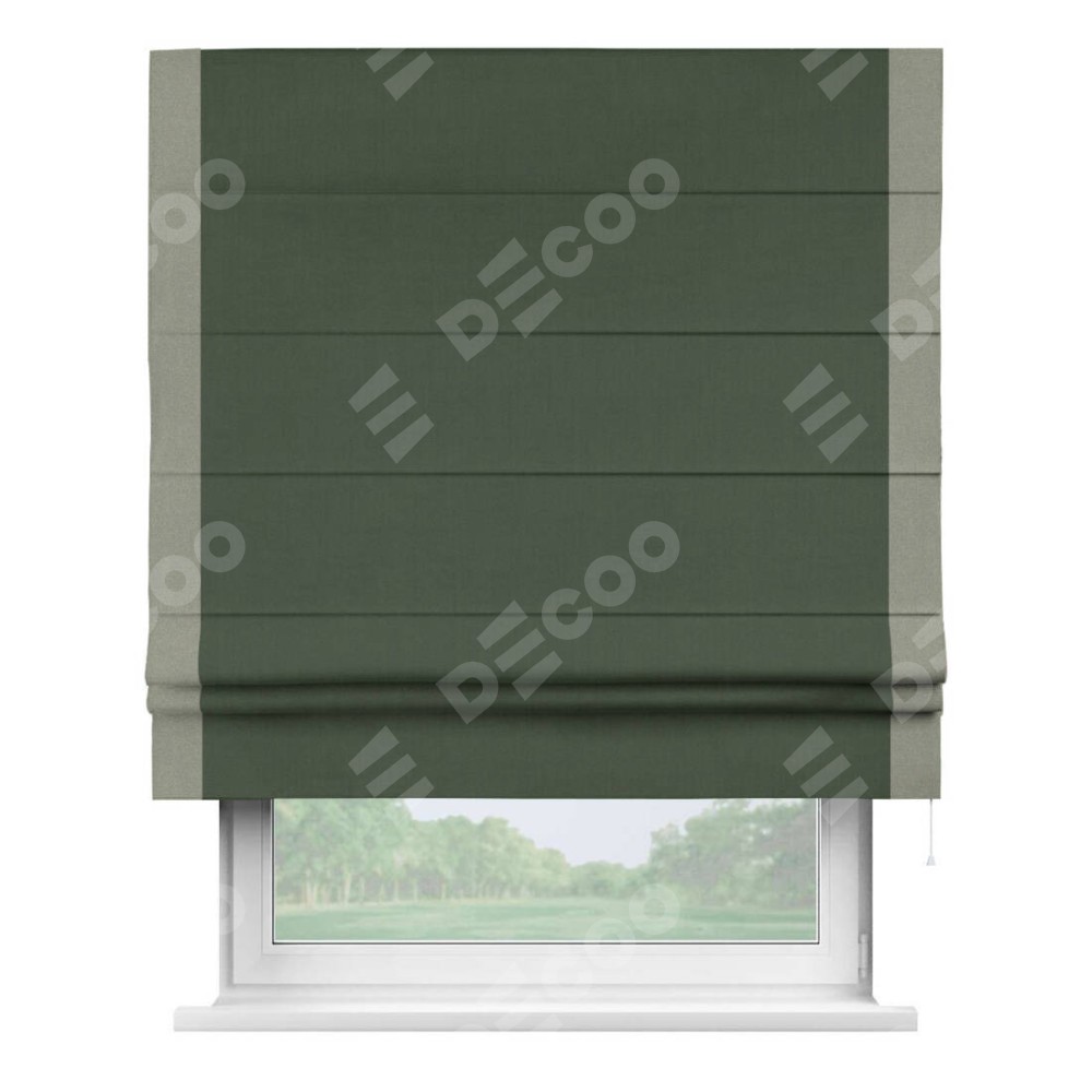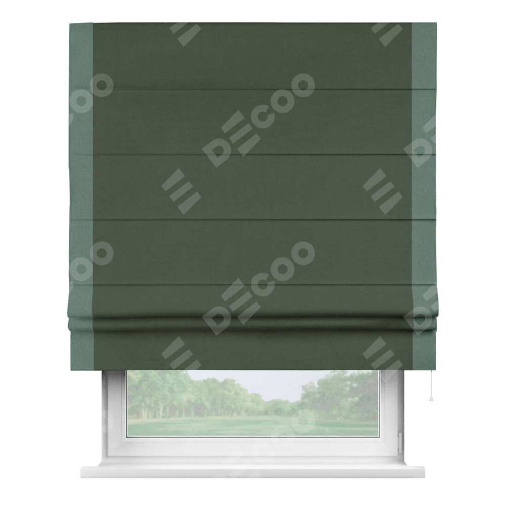 Римская штора «Кортин» с кантом Стрим Дуо, для проема, лён блэкаут зелёный