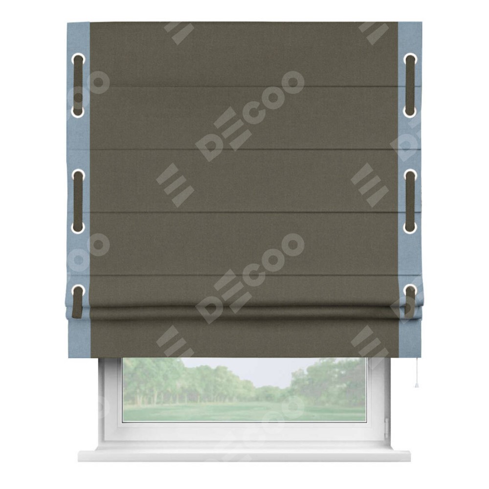 Римская штора «Кортин» с кантом Стрим Дуо (люверсы с пояском), для проема, лён блэкаут коричневый